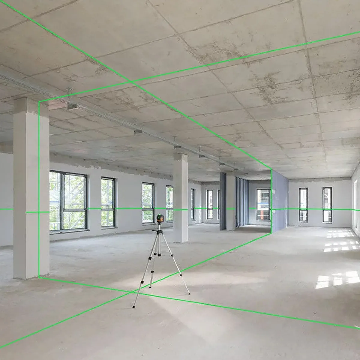 Le niveau laser FLG 6X-GREEN utilise des diodes vertes haute visibilité pour des traits lumineux et fins. Sa portée nominale atteint 30 m sans cellule et peut être étendue jusqu'à 60 m avec une cellule de détection, assurant une visibilité optimale en intérieur comme en extérieur.