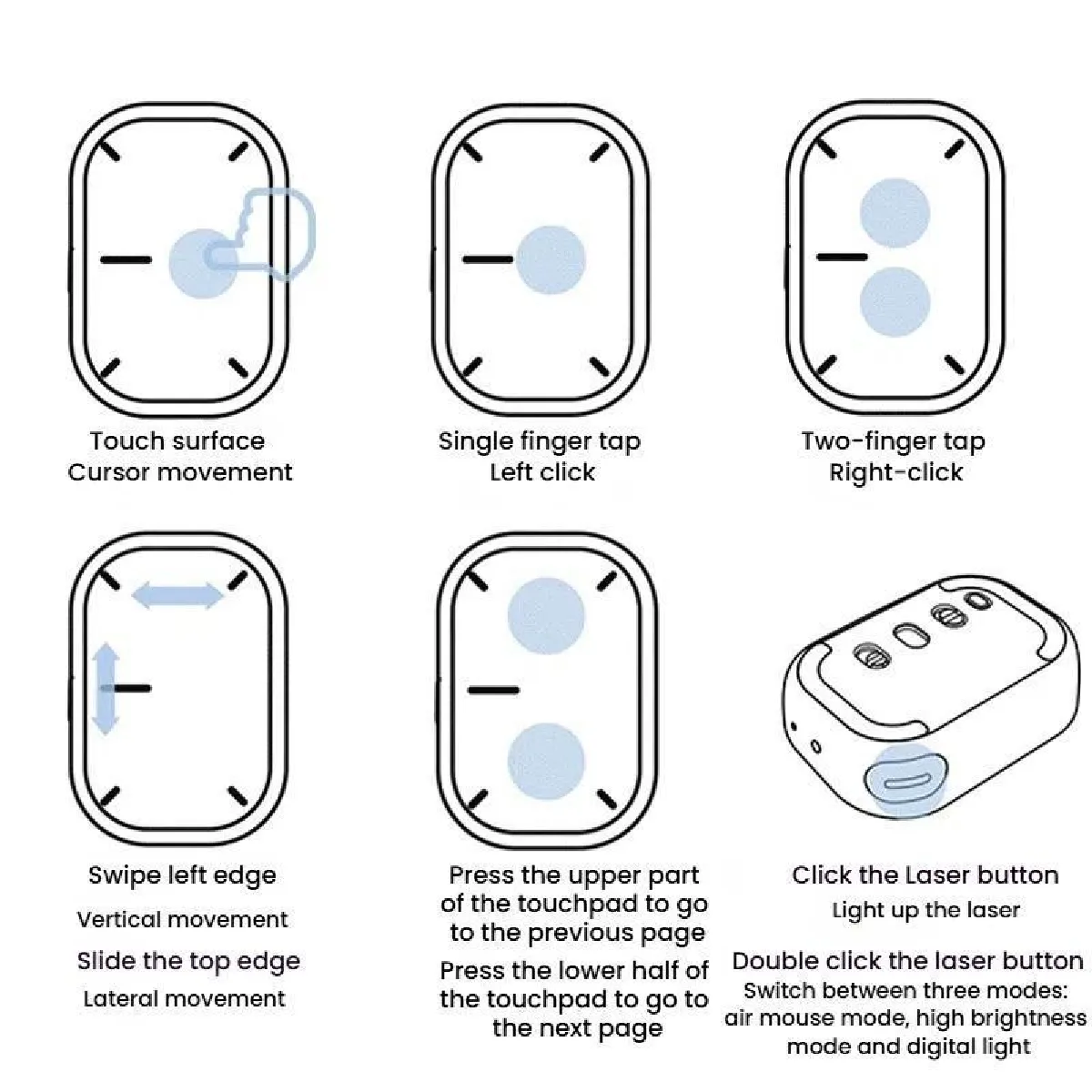 Cette souris fait également office de touchpad, vous permettant de réaliser des opérations telles que le défilement, le changement de page et le zoom de manière rapide et intuitive. Elle est équipée d'une fonction pointeur laser, parfaite pour les présentations et les réunions.