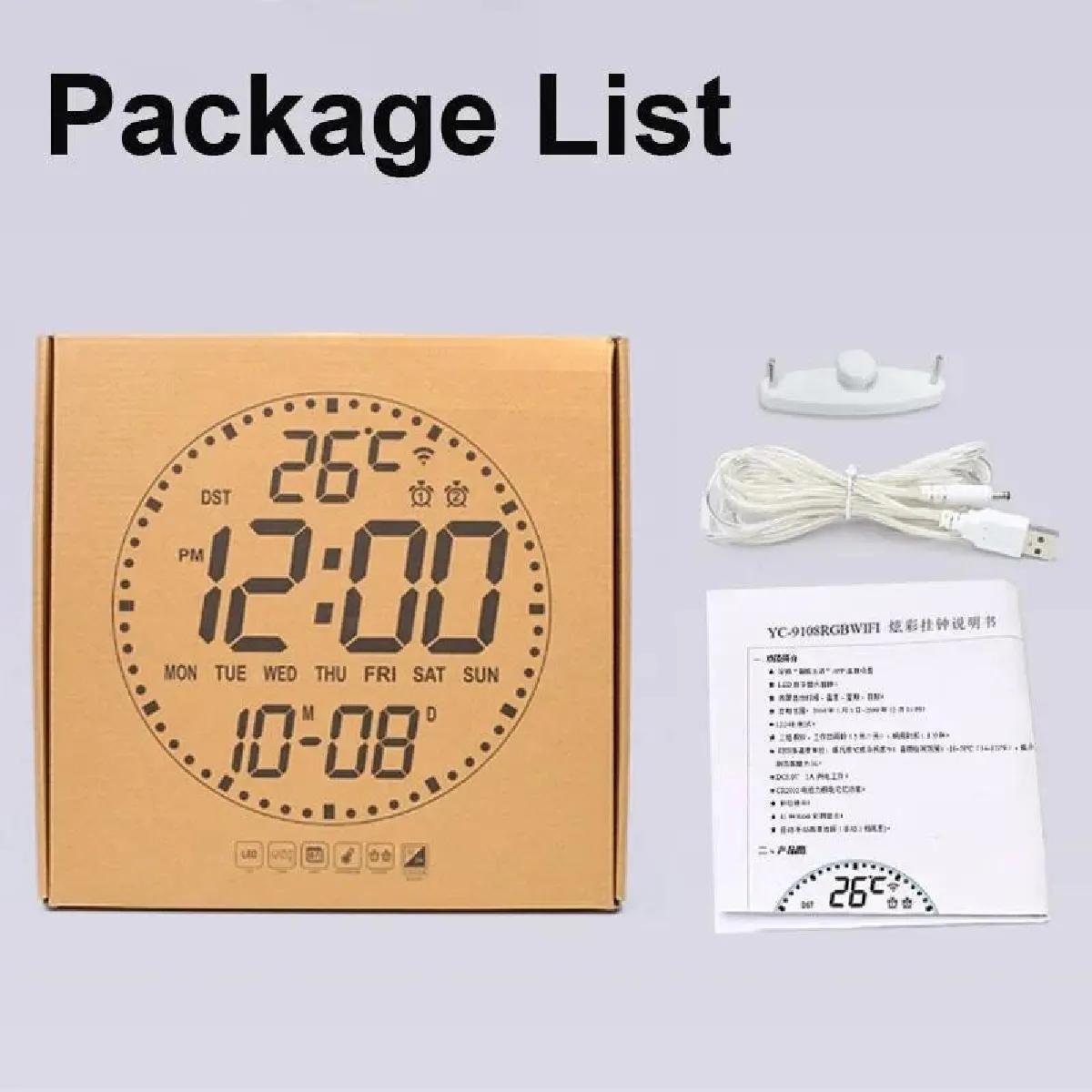 Horloge murale LED avec contrôle Wi-Fi via l'application Smart Life. Profitez de mises à jour en temps réel pour l'heure, la date et la température. Choisissez parmi 12 modes de couleurs RGB pour s'adapter à votre ambiance. Affichage multifonctionnel avec capteur de lumière intégré pour un confort visuel optimal. Alarme personnalisable et mémoire de puissance pour une expérience sans interruption. Design élégant et facile à monter.