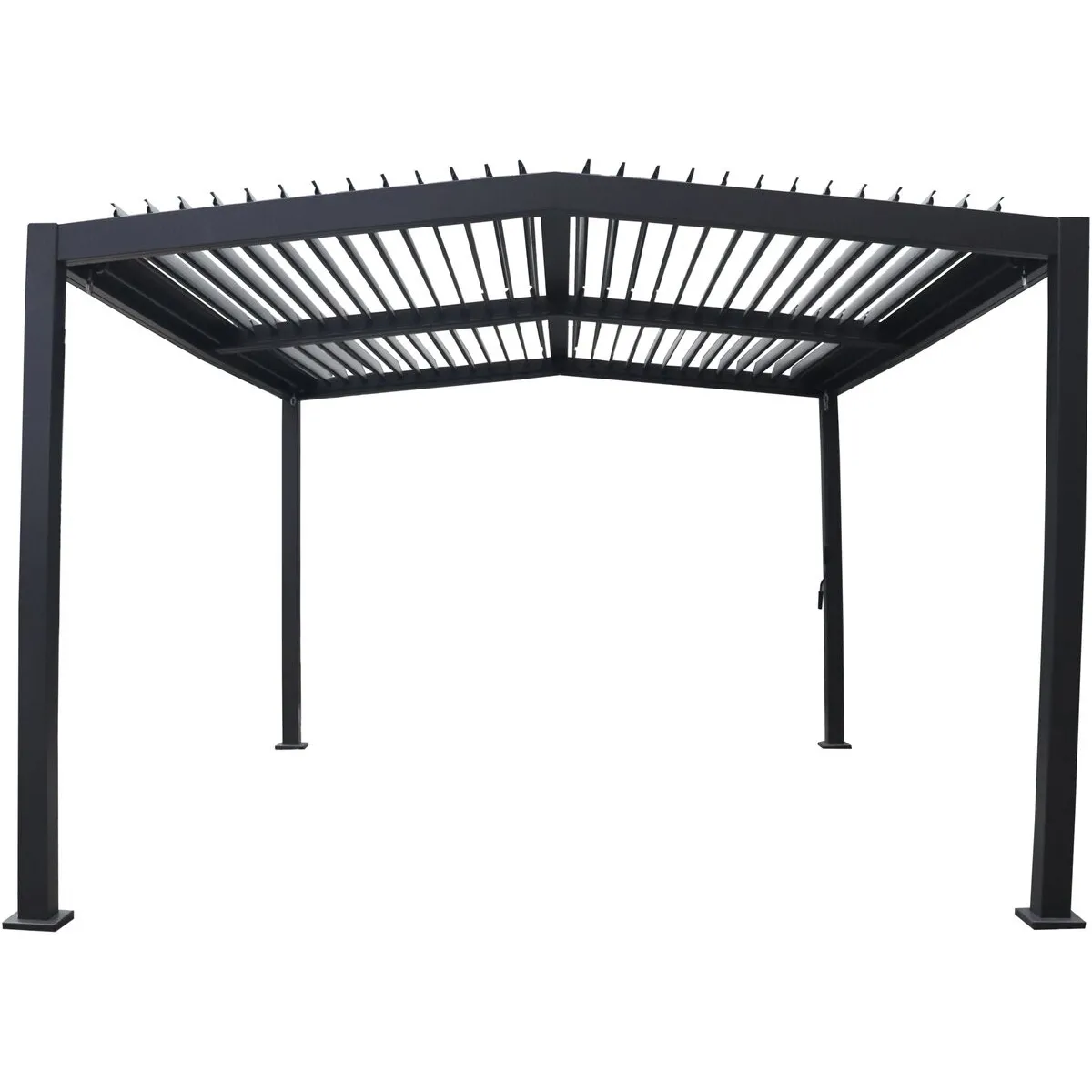 Commentaire vendeur : Pergola bioclimatique toit en V "Victoria" en aluminium et métal - 3,5 x 4 m - Dimensions : 338 x 392 x 242 cm - Gris - Poids : 145 kg - Possibilité de réguler l'ombre et la lumière.