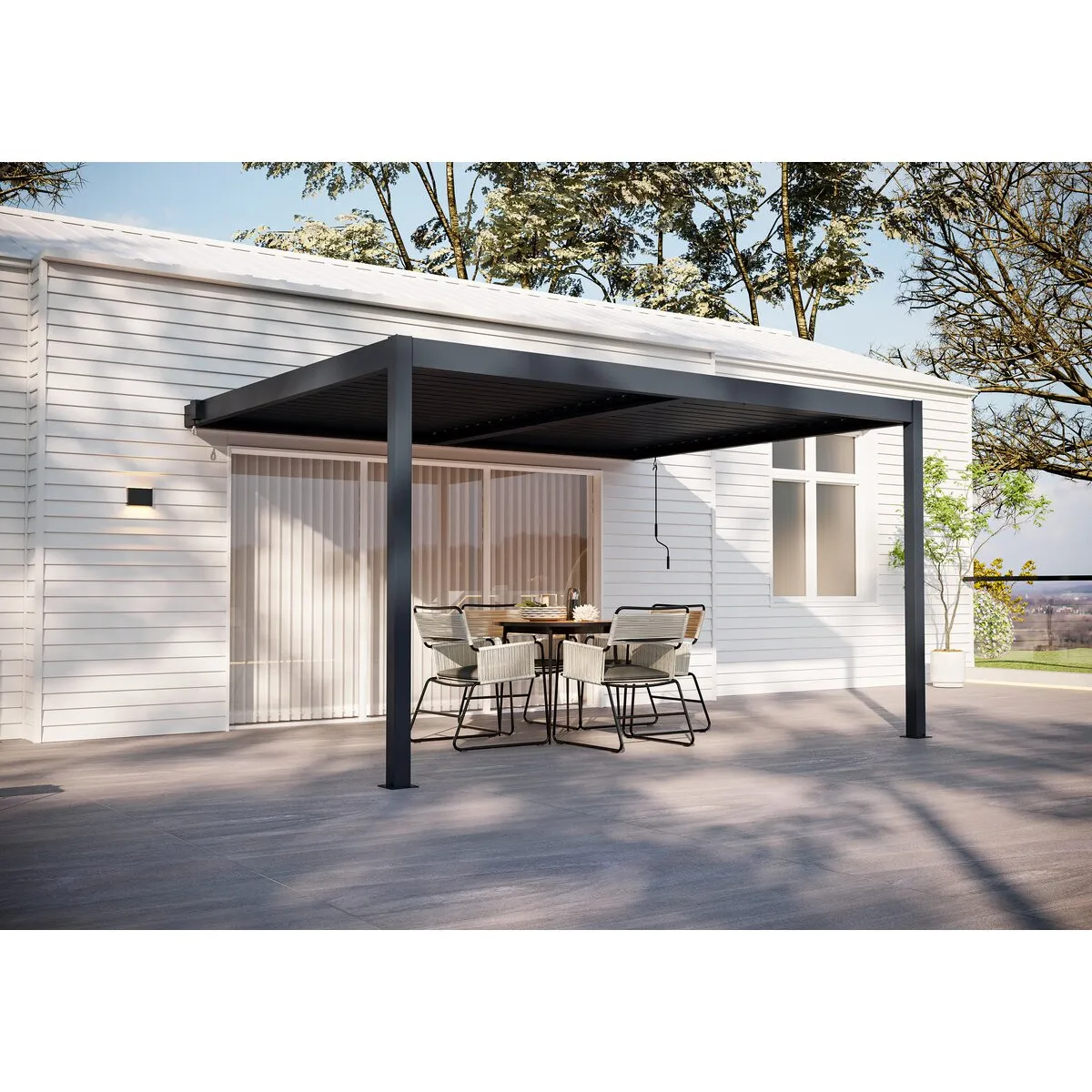 Habitat Et Jardin Pergola adossée en aluminium Windsor - Gris anthracite - 3 x 4 m |