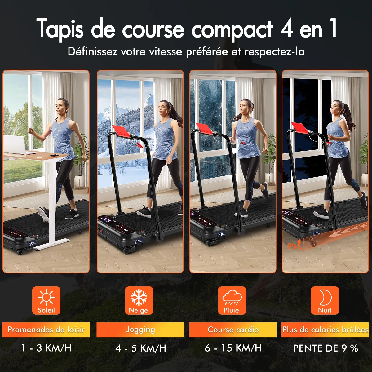 Ce tapis de course pratique, placé sous le bureau, peut également vous aider à rééquilibrer vos postures assises et debout, vous permettant ainsi d'intégrer plus de mouvement à votre quotidien. Nul besoin de marcher toute la journée pour être au top de vos performances sur route et sur sentier ; ce tapis de marche vous permet de rester actif lorsque vous envoyez des e-mails ou assistez à des réunions, stimulant ainsi votre métabolisme et votre condition cardiovasculaire à chaque pas. Que vous travailliez debout au bureau ou que vous souhaitiez rester actif devant la télévision à la maison, notre tapis de marche vous permet d'atteindre vos objectifs quotidiens de pas, que vous travailliez ou que vous receviez des amis.