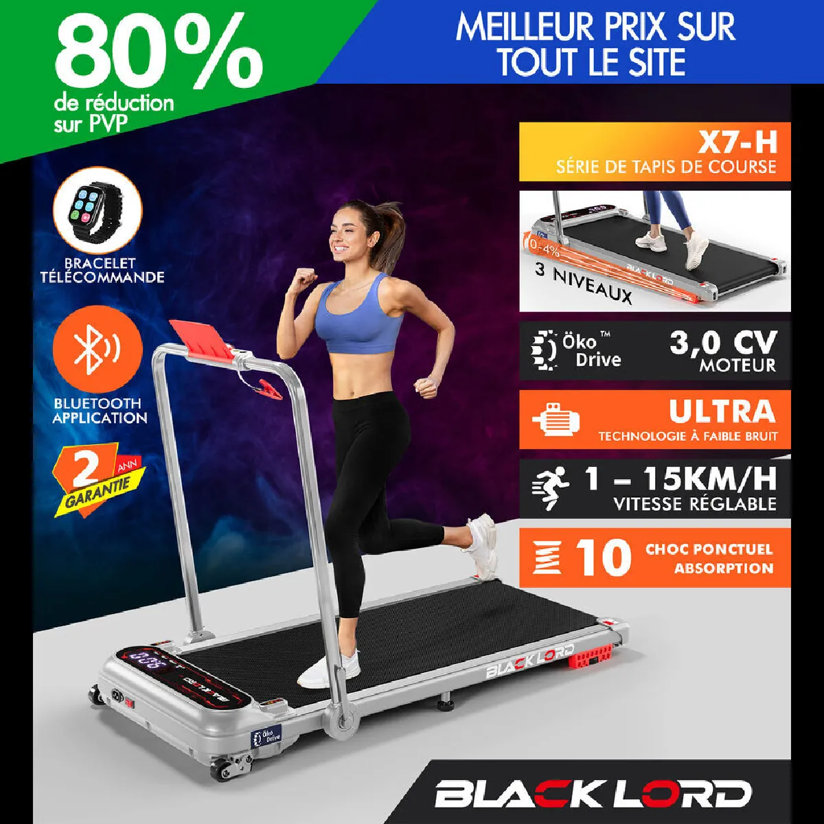 Reste en forme et en bonne santé même à l'intérieur. N'attendez plus ! Ce tapis de marche BLACK LORD® X7-H révolutionnera votre salle de sport à la maison ou dans votre garage.