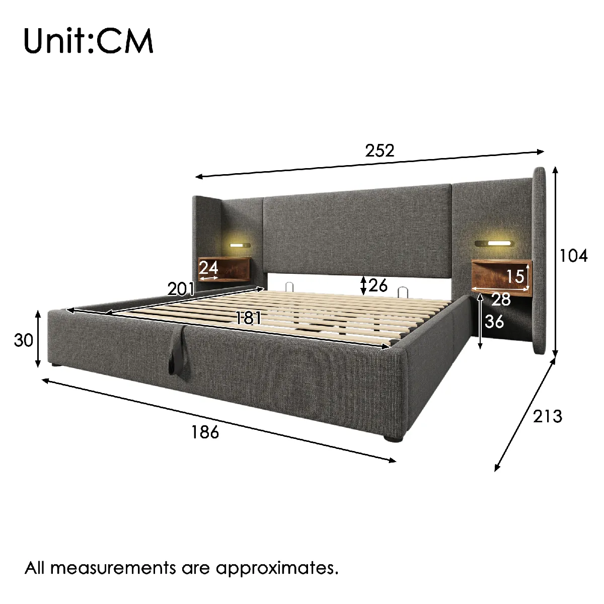 - Contenu du colis : Structure de lit + fonction de charge + lampe de lecture