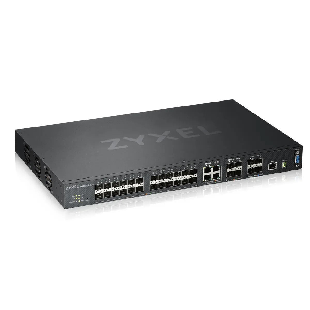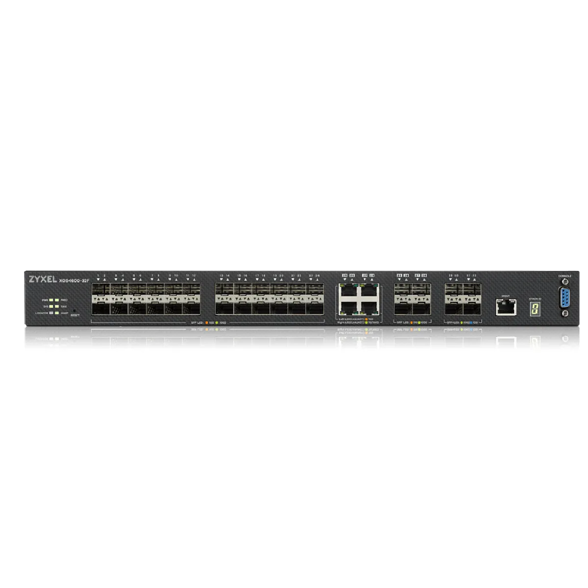 Zyxel XGS4600-32F. Type de commutateur: Géré, Banc de commutateurs: L3. Port de console: RS-232. Répertoire MAC: 32000 entrées, Capacité de commutation: 136 Gbit/s. Standards réseau: IEEE 802.1D, IEEE 802.1Q, IEEE 802.1ad, IEEE 802.1p, IEEE 802.1s, IEEE 802.1w, IEEE 802.1x, IEEE.... Grille de montage