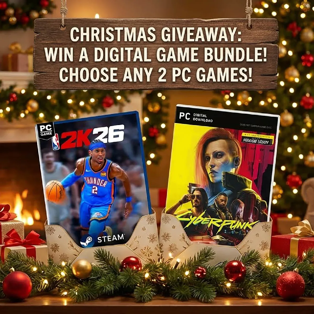 Célébrez Noël en grande pompe grâce à notre promotion spéciale. Pour l'achat de votre équipement NitroPC, vous recevrez deux jeux numériques AAA (d'une valeur de plus de 120 ) dont vous pourrez profiter dès le premier instant. Choisissez vos aventures parmi une large sélection de titres : explorez des mondes ouverts comme Red Dead Redemption 2, vivez des histoires RPG épiques comme Elden Ring, plongez dans des jeux de tir narratifs comme Cyberpunk 2077 : Ultimate Edition, ressentez l'adrénaline de la conduite dans Forza Horizon 5, gérez votre propre monde dans Planet Zoo : Deluxe Edition, participez à des compétitions sportives comme NBA 2K26, maîtrisez le combat dans TEKKEN 8, affrontez la terreur dans Silent Hill 2 ou partagez le plaisir du mode coopératif avec It Takes Two, entre autres.
