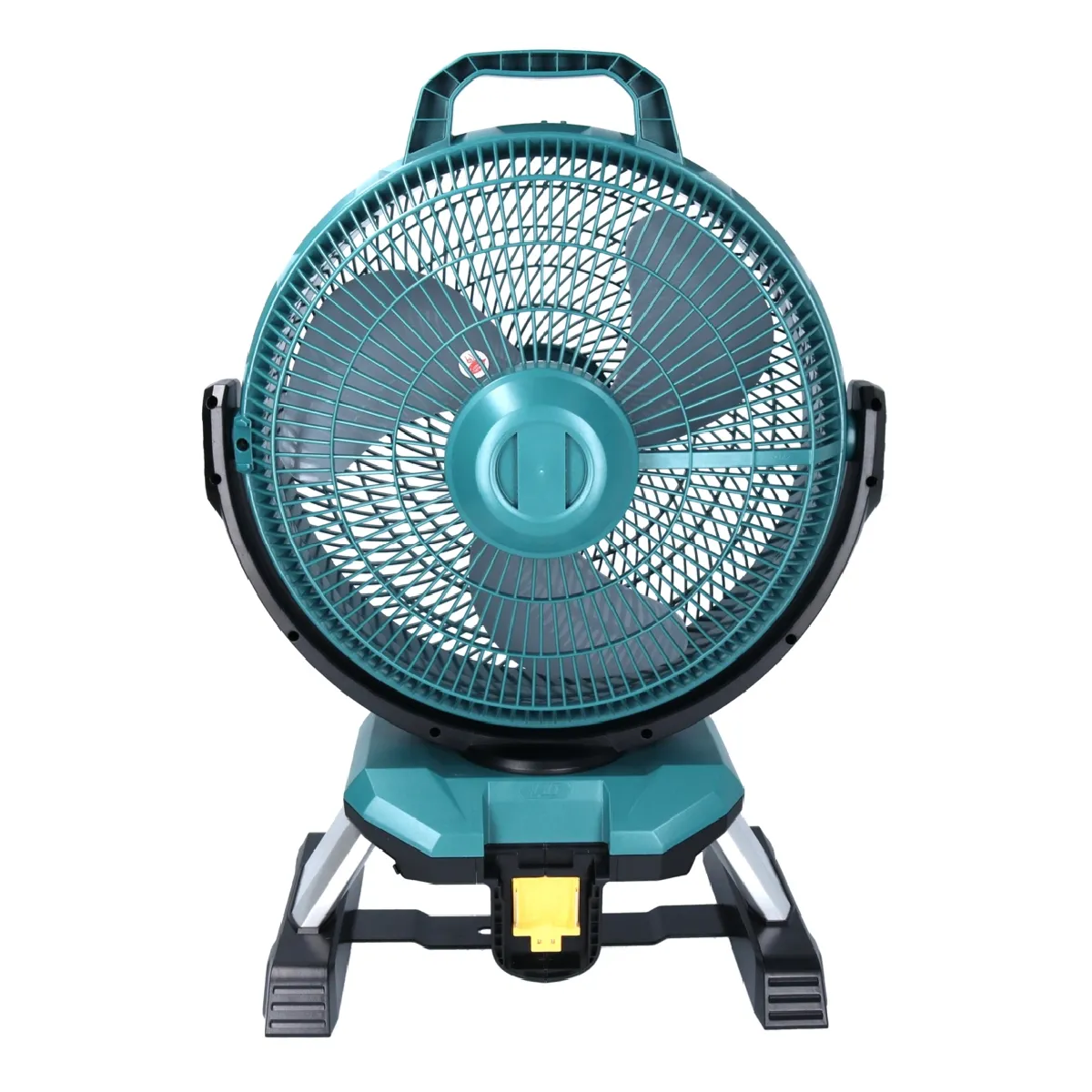 Le DCF 301 est un ventilateur à batterie puissant de la maison Makitas. Le flux d'air peut être réglé sur trois niveaux. De plus, le ventilateur pivote automatiquement de 45° vers la droite et la gauche et s'incline de 90° vers le haut et le bas. Avec une vitesse d'air maximale de 2,0 m/s, il permet de se rafraîchir même les jours de grande chaleur. Grâce à son grand pied, il peut également garantir une position stable sur des surfaces inégales. Le DCF 301 dispose d'un arrêt automatique par minuterie après 1, 2 ou 4 heures au choix. Le ventilateur sans fil peut également être utilisé avec un adaptateur secteur. Makita est un fabricant leader d'outils électriques qui se distingue surtout par la qualité de sa fabrication et son grand système de batteries 18 V.
