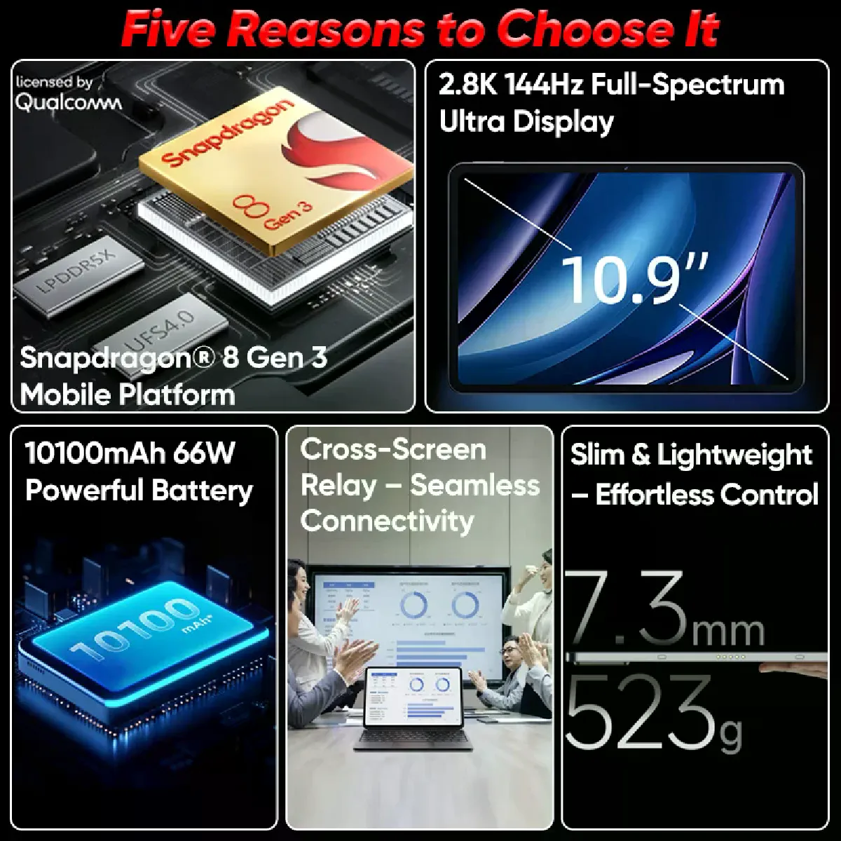 Nubia Pad Pro Tablet, Écran 10.9" 2.8K 144Hz Ultra Fluide, Snapdragon 8 Gen 3, Batterie 10100mAh, Charge Rapide 66W, 4 Haut-parleurs, Léger et Portable pour Gaming et Productivité 16/512Go Noir |