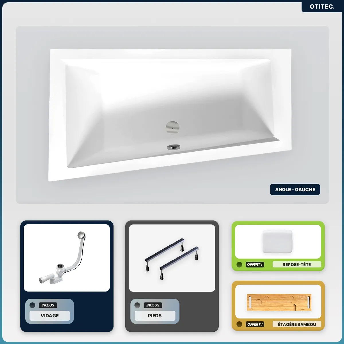 Parce quune baignoire est bien plus quun simple élément de salle de bain, OTITEC conçoit des modèles qui allient savoir-faire artisanal, matériaux haut de gamme et exigence de durabilité. Chaque pièce est fabriquée à la main avec une attention particulière aux détails, garantissant un design soigné et une qualité irréprochable. Élégantes et robustes, nos baignoires offrent une expérience de bain agréable et un confort durable.