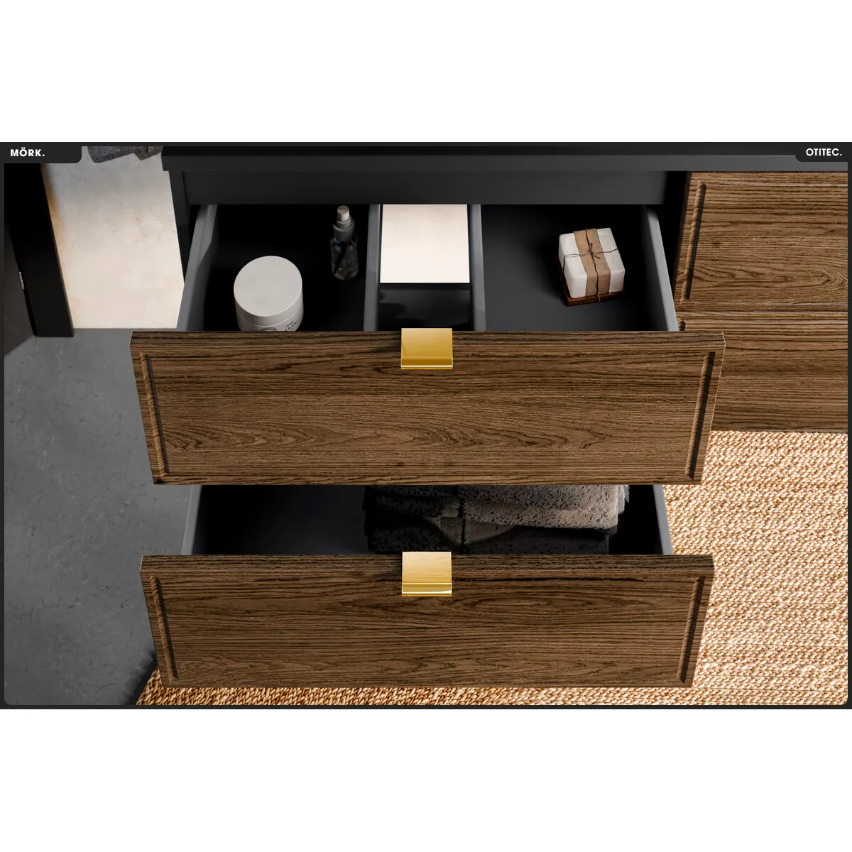 - Deux tiroirs avec fermeture douce pour un rangement ordonné