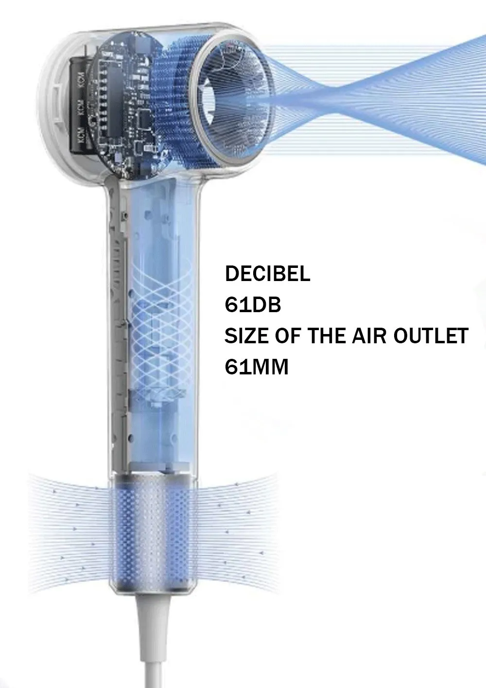 Sèche-cheveux de voyage ionique - moteur 105000 tr/min - 2 vitesses - 4 modes - buse magnétique 360° - 61 dB - contrôle thermique intelligent