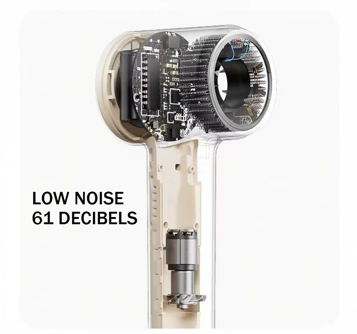 Le moteur sans balais atteint 110 000 tr/min et délivre jusqu'à 19 m/s, offrant un séchage rapide tout en réduisant le temps d'exposition à la chaleur.