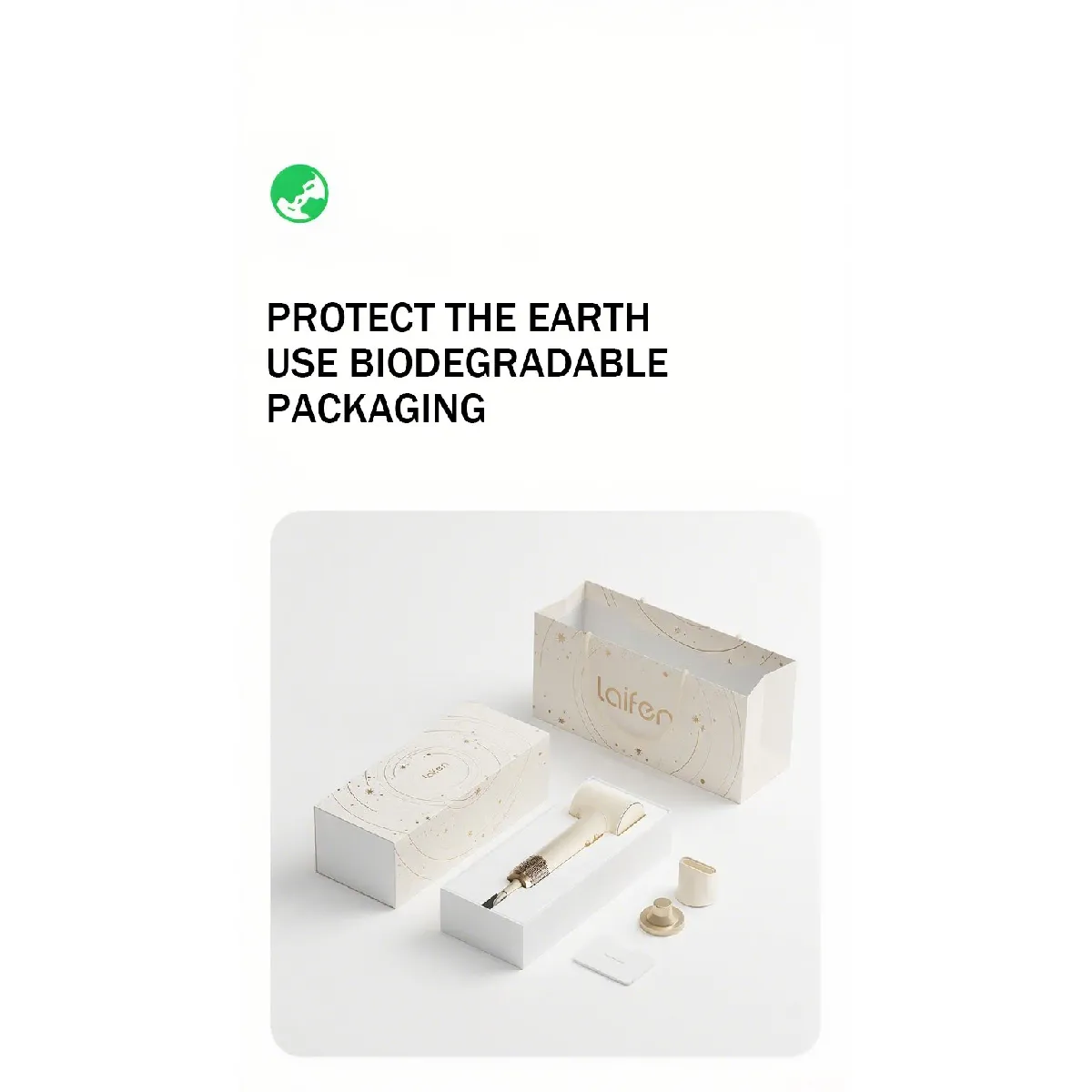 Le paquet inclut un mini Laifen, un cordon d'alimentation, une buse à flux doux, un support à crochet et un manuel d'utilisation.