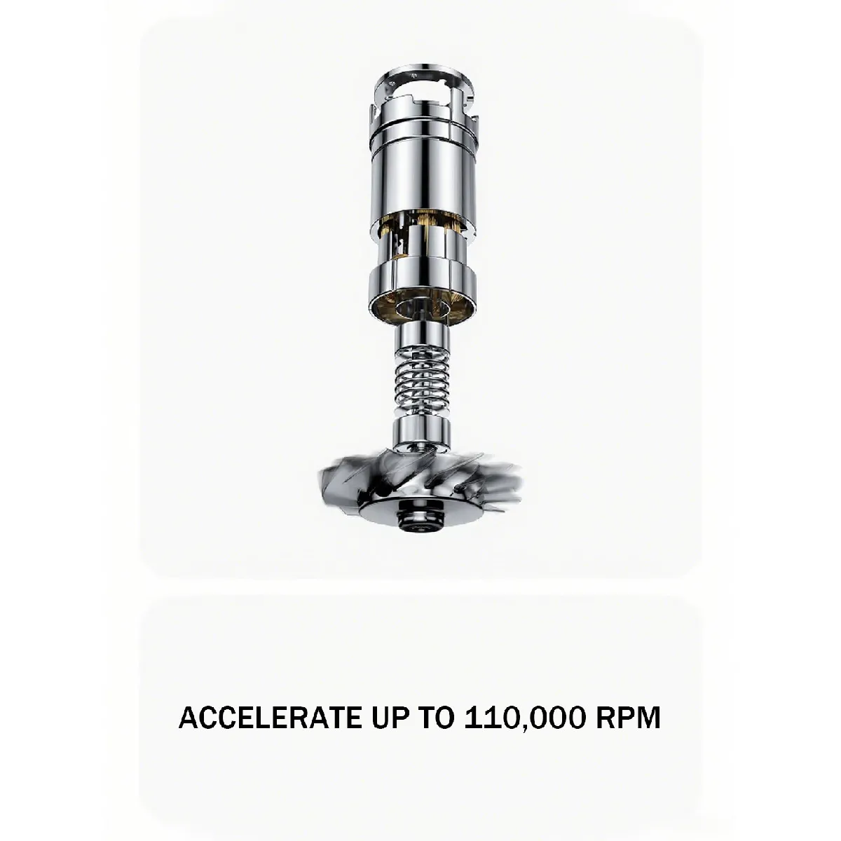 - Moteur sans balais 110 000 tr/min et vitesse d'air jusqu'à 19 m/s