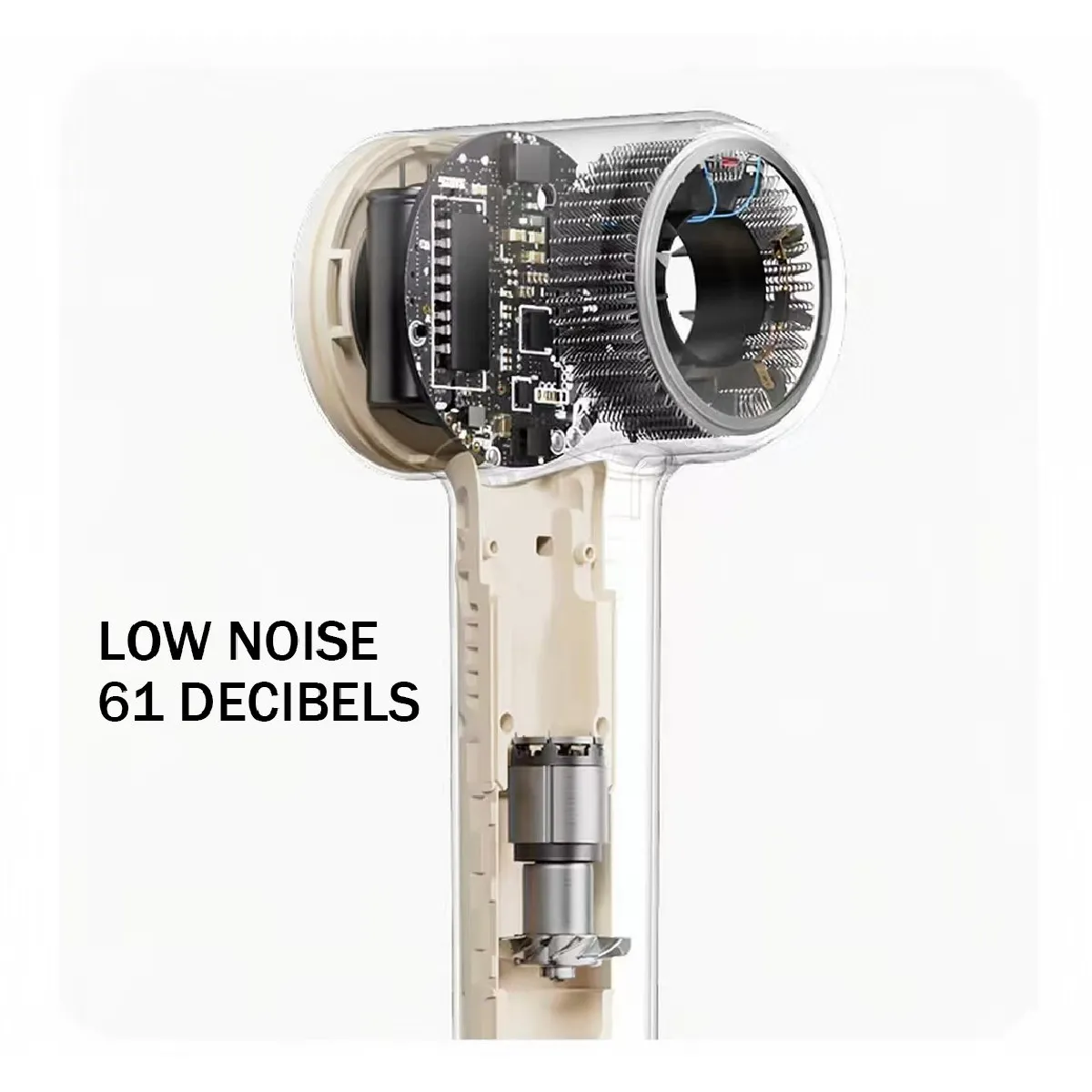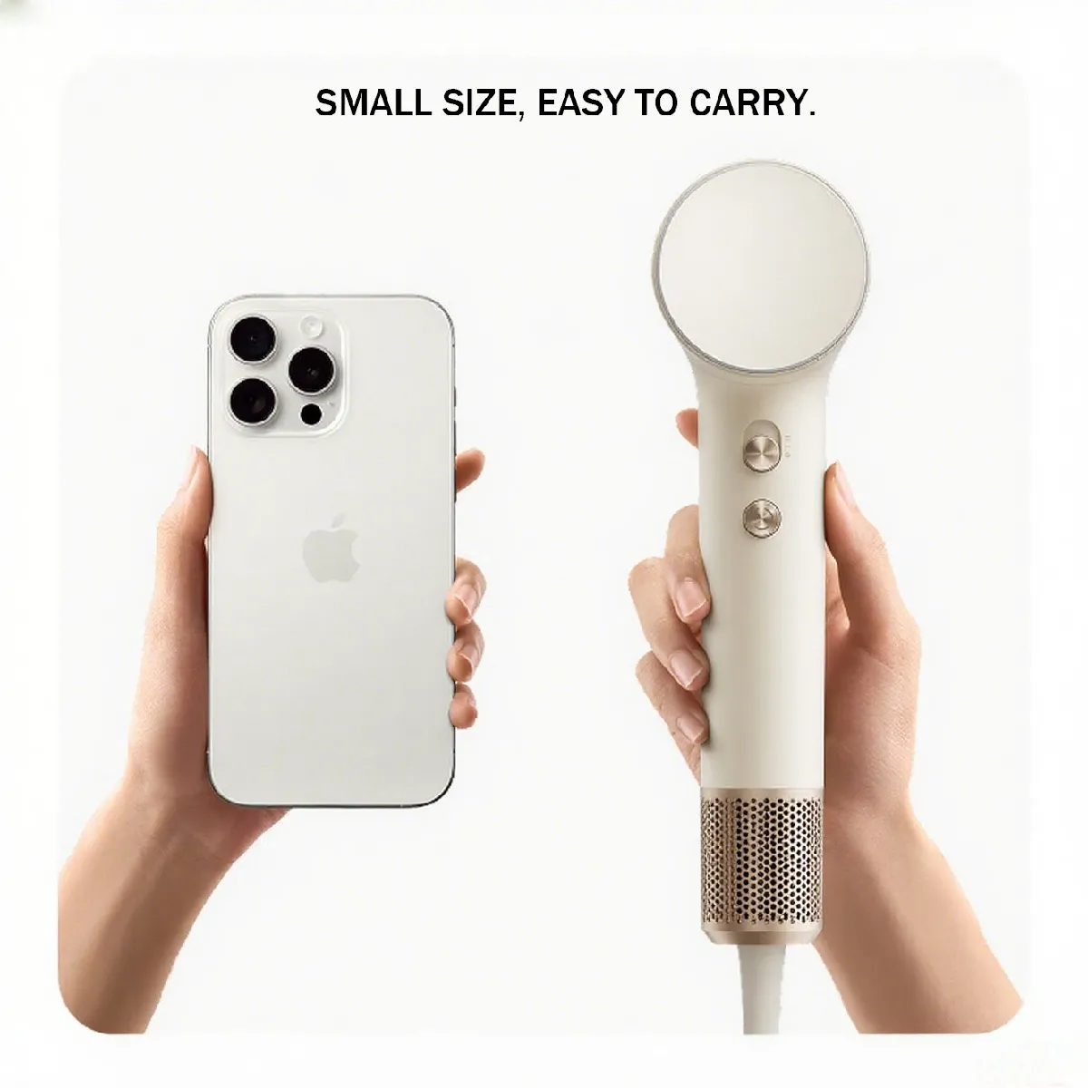 Sèche-cheveux de voyage ionique - moteur brushless 110000 tr/min - 2 vitesses - 3 réglages - buse magnétique 360° - faible bruit 61 dB - contrôle thermique