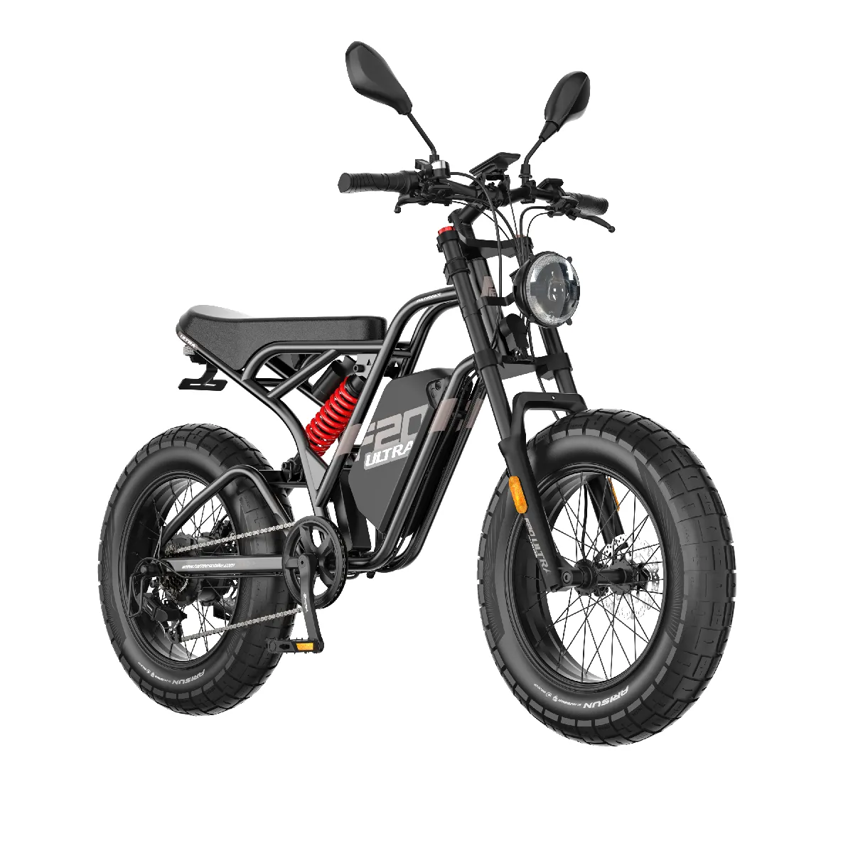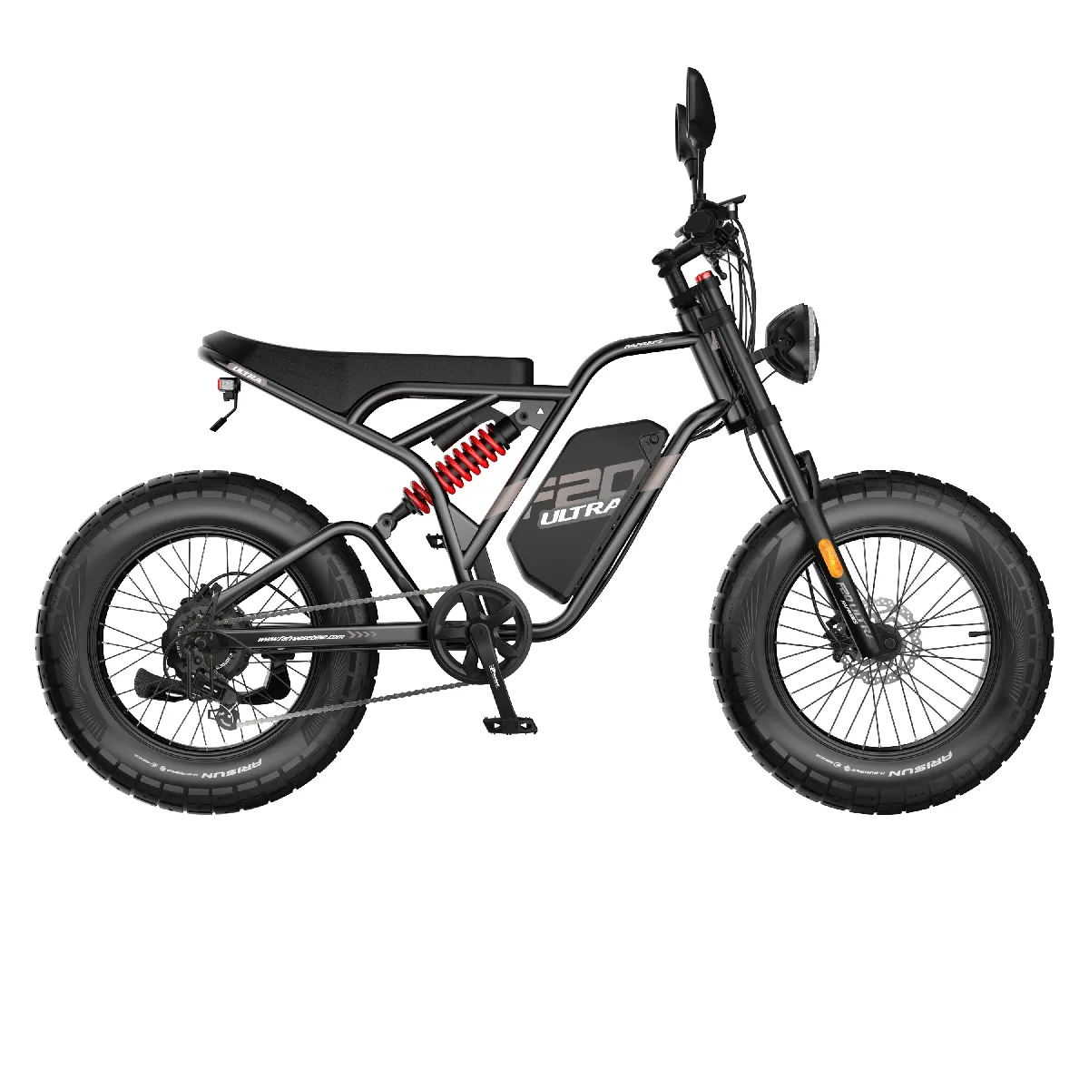 Les pneus extra-larges et résistants aux crevaisons offrent une adhérence et une stabilité exceptionnelles sur des terrains variés, de l'asphalte à la neige, en passant par le sable, la boue ou le gravier, faisant du F20 Ultra un vélo polyvalent et performant par tous les temps.