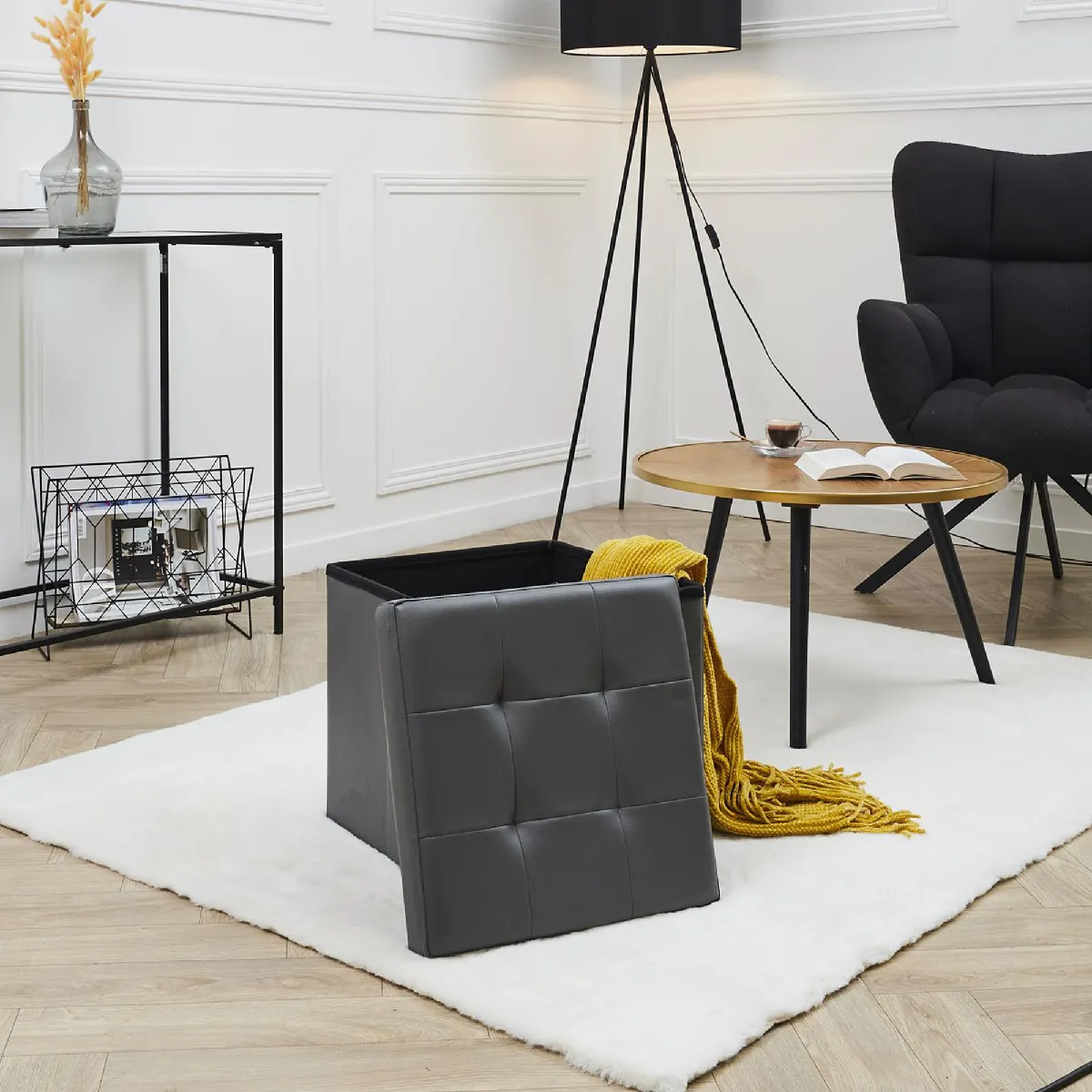 Commentaire vendeur : COFFRE POUF PLIABLE CHICCe siège d'appoint design et pliable apportera beaucoup de cachet dans votre séjour! Découvrez le design capitonné de son assise et profitez d'un espace de rangement parfaitement optimisé et discret.Ce pouf fera un bel objet de décoration pour la chambre, le salon... Idéal pour offrir en cadeau merveilleux et inoubliable !Astuce 2 en 1 : ce pouf peut aussi servir de rangement (en enlevant son couvercle ) pour ranger tous type d'objets, plaids, livres ou même des oreillers... afin que vous puissiez garder votre maison organisée et bien rangée sans compromis pour le look !Côté technique :2 en 1PliableObjet de décorationDimensions ± 37.5 x 37.5 x 37.5 cmPoids : ±2700 gPouf vendu à l'unitéComposition : Plastique, Bois et rembourrageMatière structure : boisMatière rembourrage : mousseLivré sous film plastiqueFabriqué en ChineLes plus du produit :Très belle qualitéLéger, il est facile à déplacer dans la maison et il est soyeux et incroyablement confortable !Côté pratique :Entretien : Nettoyer la boite avec une éponge légèrement humide et bien laisser sécher