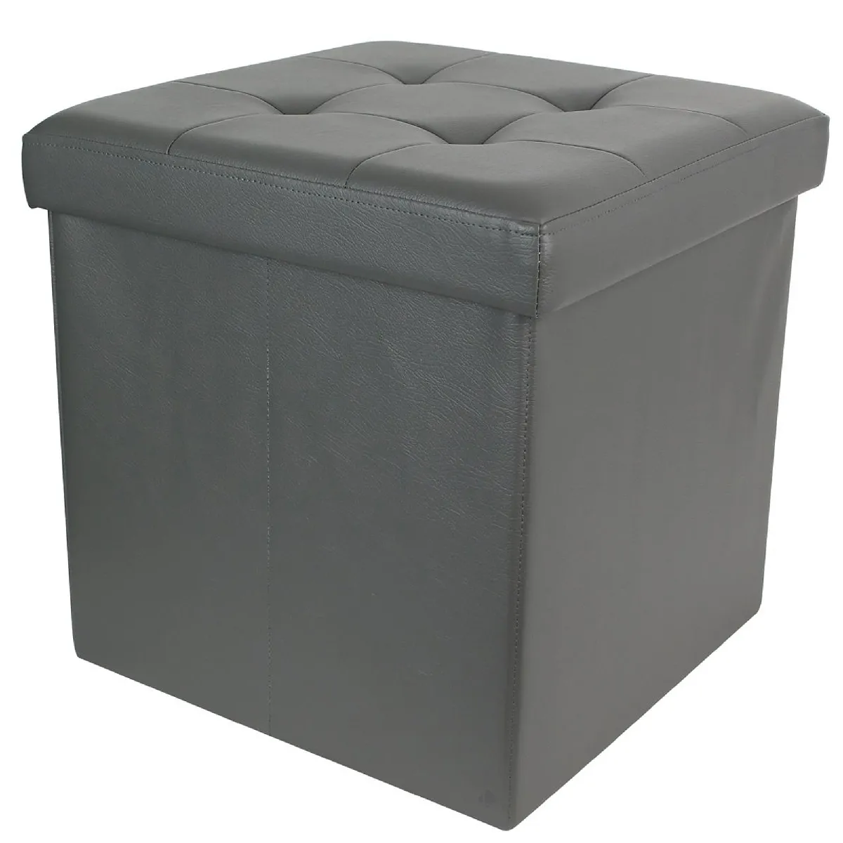 Linnea Coffre pouf décoratif 38x38x38 cm aspect matelassé collection CHIC gris