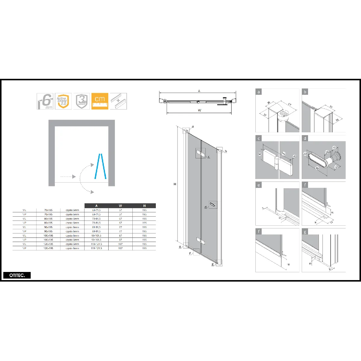 OTITEC Porte de Douche Pliante - 70 x 195 cm - Droite | GOLYA - Laiton Brossé |