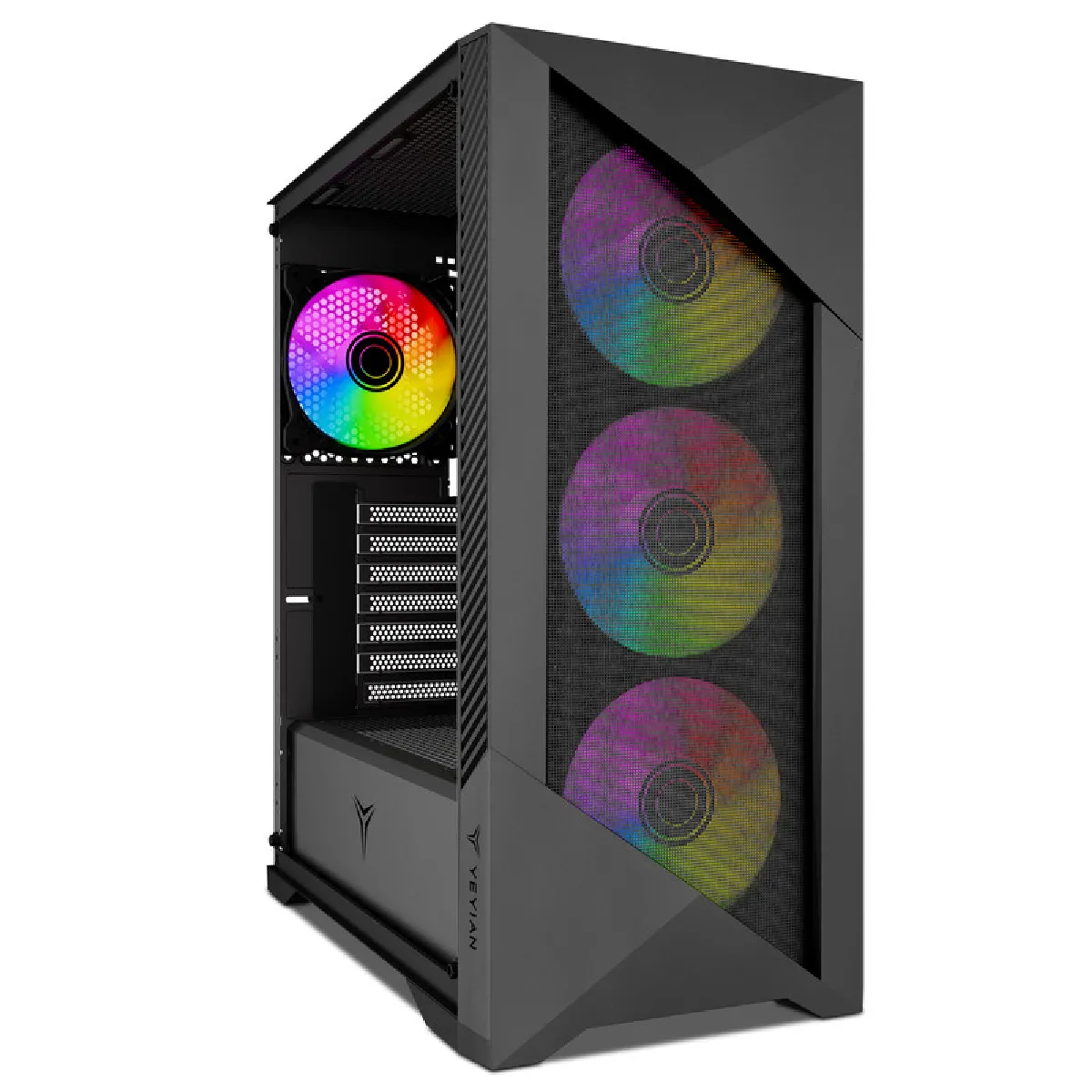 - Ventilation fournie : 4 ventilateurs (3 en façade, 1 à l'arrière)