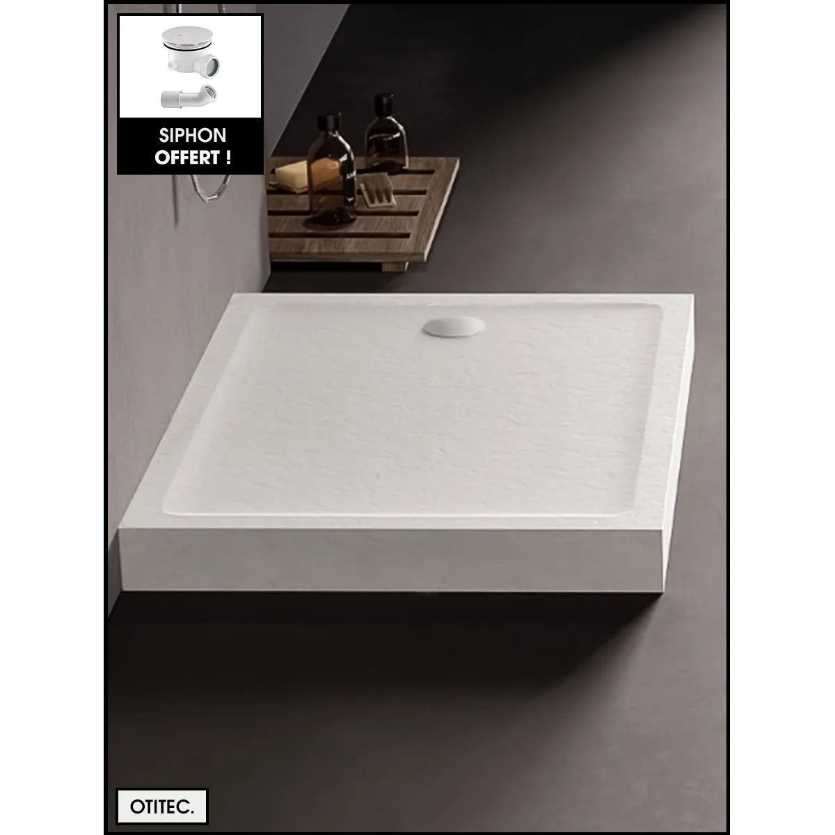 OTITEC Receveur de Douche Rectangle - 70 x 110 x 11,5 cm - Blanc Effet Pierre - avec Siphon OFFERT - MOON STONE |