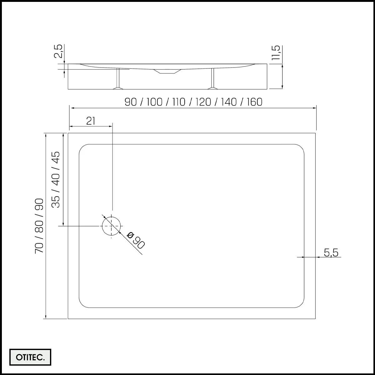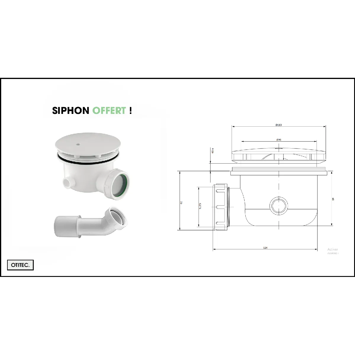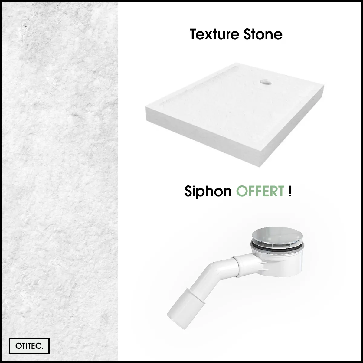 OTITEC Receveur de Douche Rectangle - 70 x 110 x 11,5 cm - Blanc Effet Pierre - avec Siphon OFFERT - MOON STONE