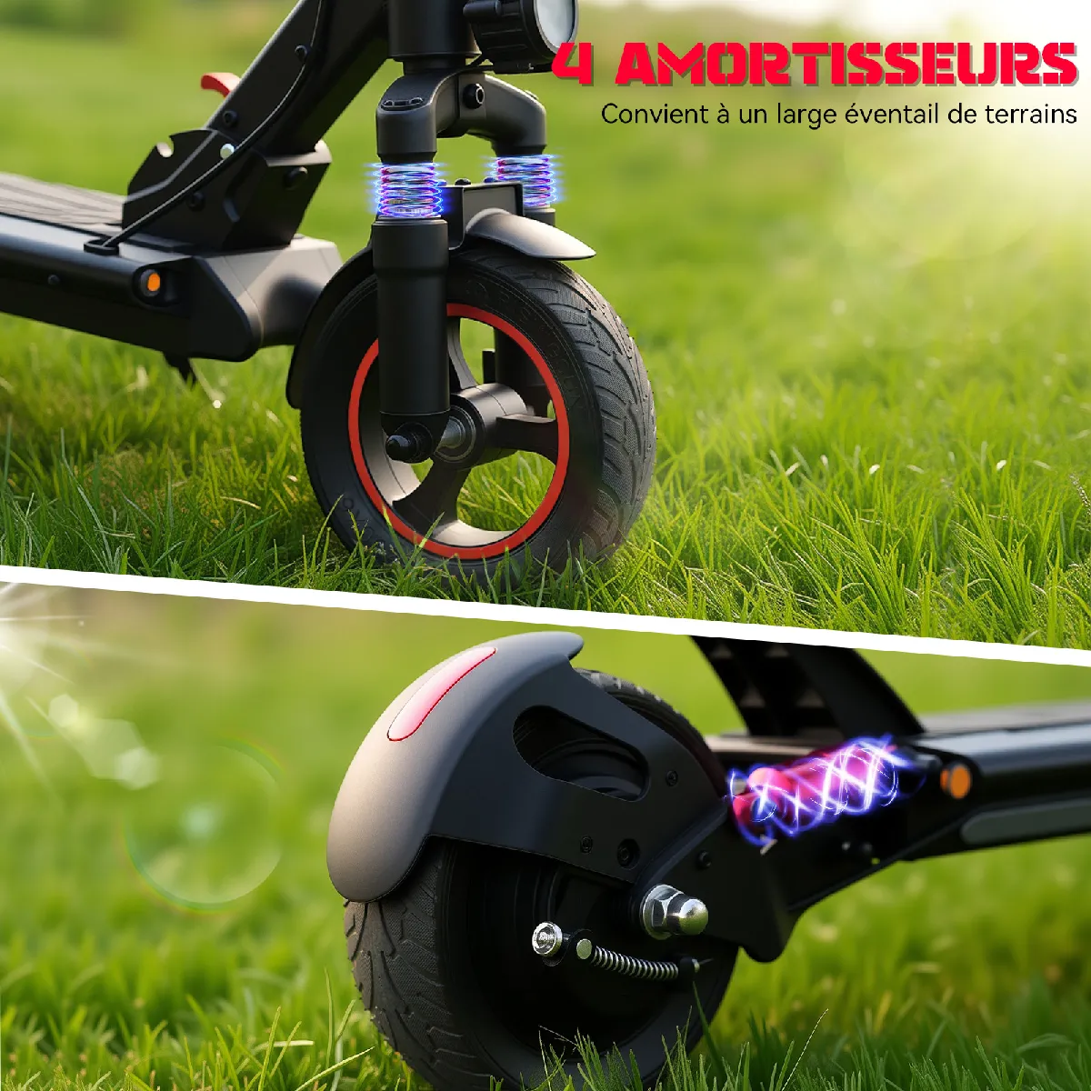 .Système d’amortissement double avant et arrière sûr et fiable