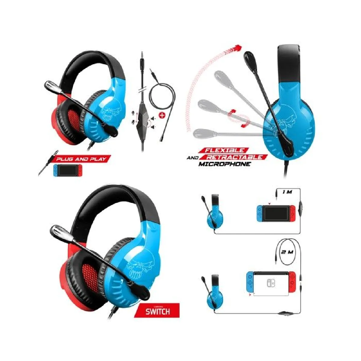 La restitution en stéréo 2.0 avec haut-parleurs de 50 mm propose un son équilibré, utile pour distinguer dialogues, effets et musique. Le microphone omnidirectionnel rétractable capte la voix de manière uniforme, et son bras flexible permet d'ajuster l'angle rapidement. Un contrôle du volume intégré facilite les réglages sans quitter l'écran. La compatibilité avec Nintendo Switch et PC élargit les usages, que ce soit pour le jeu, le chat vocal ou la lecture de médias.