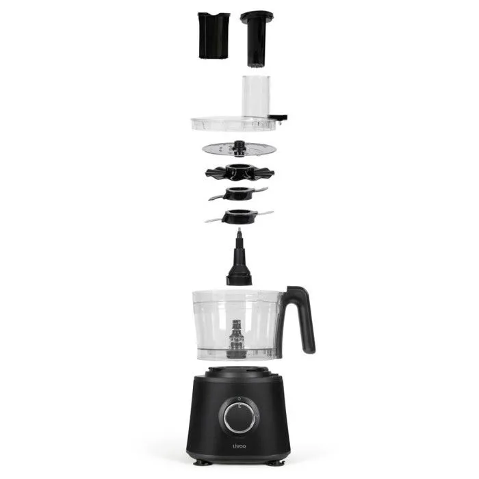 Robot multifonction de cuisine - 600 W - 2 vitesses - Bol en verre - 6 fonctions - Accessoires compatibles lave-vaisselle - Verrouillage et pieds antidérapants