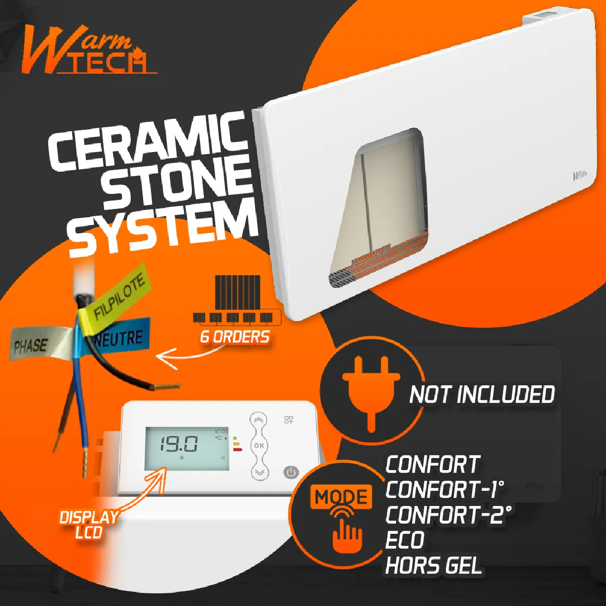 Warm Tech Radiateur inertie céramique 2000 W - IP24 - Fil pilote 6 ordres.