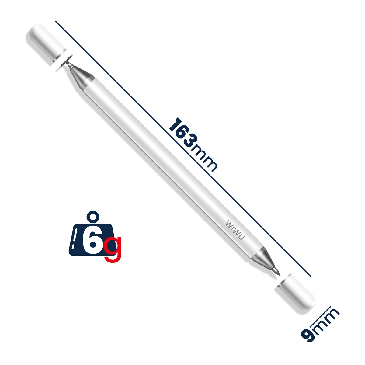 wiwu Stylet Tactile 2 en 1 pour Écran ou Papier avec Stylo Bille Intégré Blanc