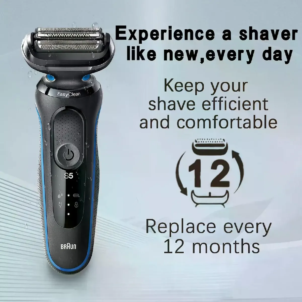 Tête de rechange pour rasoir Braun série 5/6 - 3 lames flexibles - grille avec micro-peigne - clipse en un clic - compatible 5018s, 5020s, 5050cs, 6020s, 6072cc
