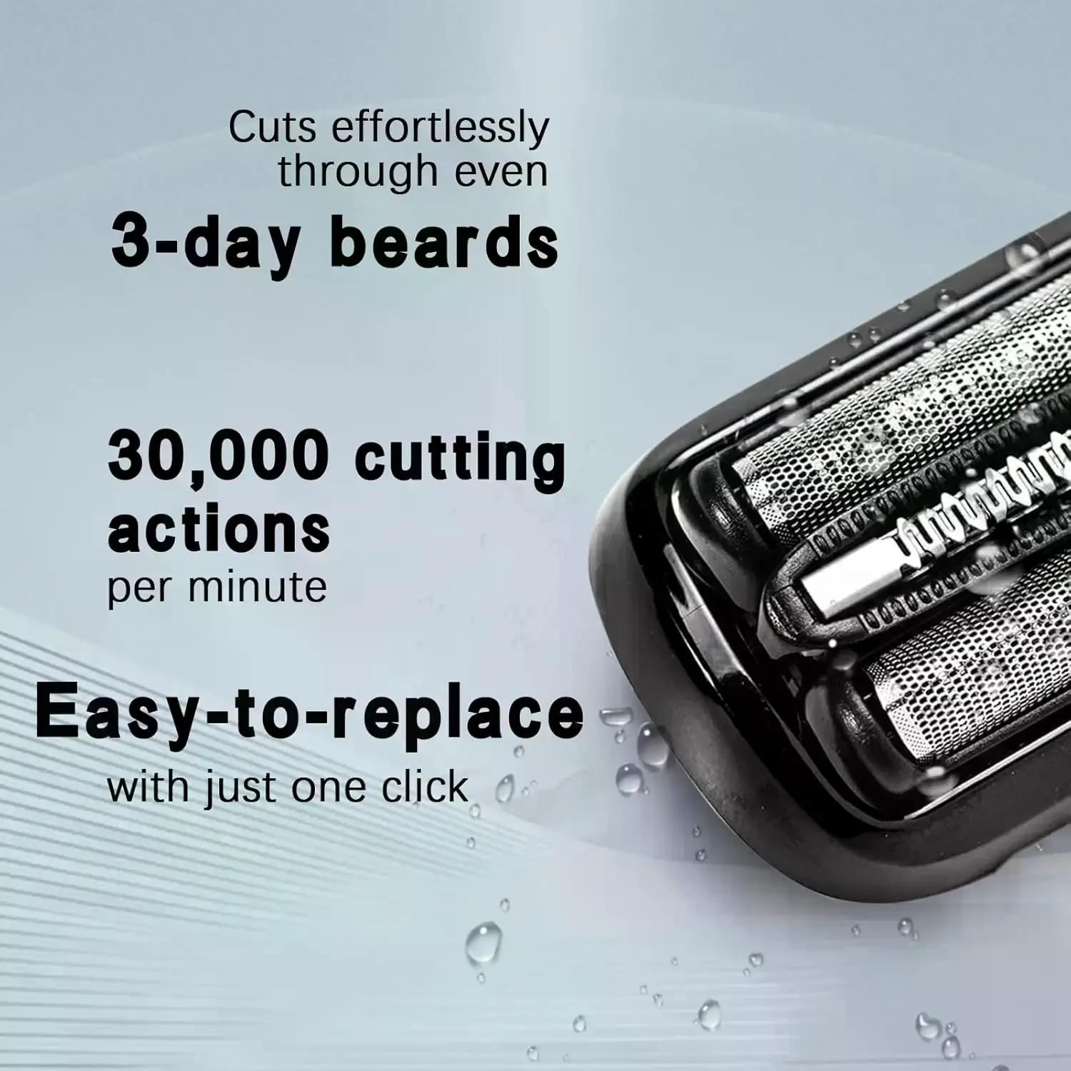 Tête pour rasoir électrique – Compatibilité Braun séries 5 et 6 – 3 lames flexibles – Grille avec micro-peigne – Clipse en un clic – 1 pièce
