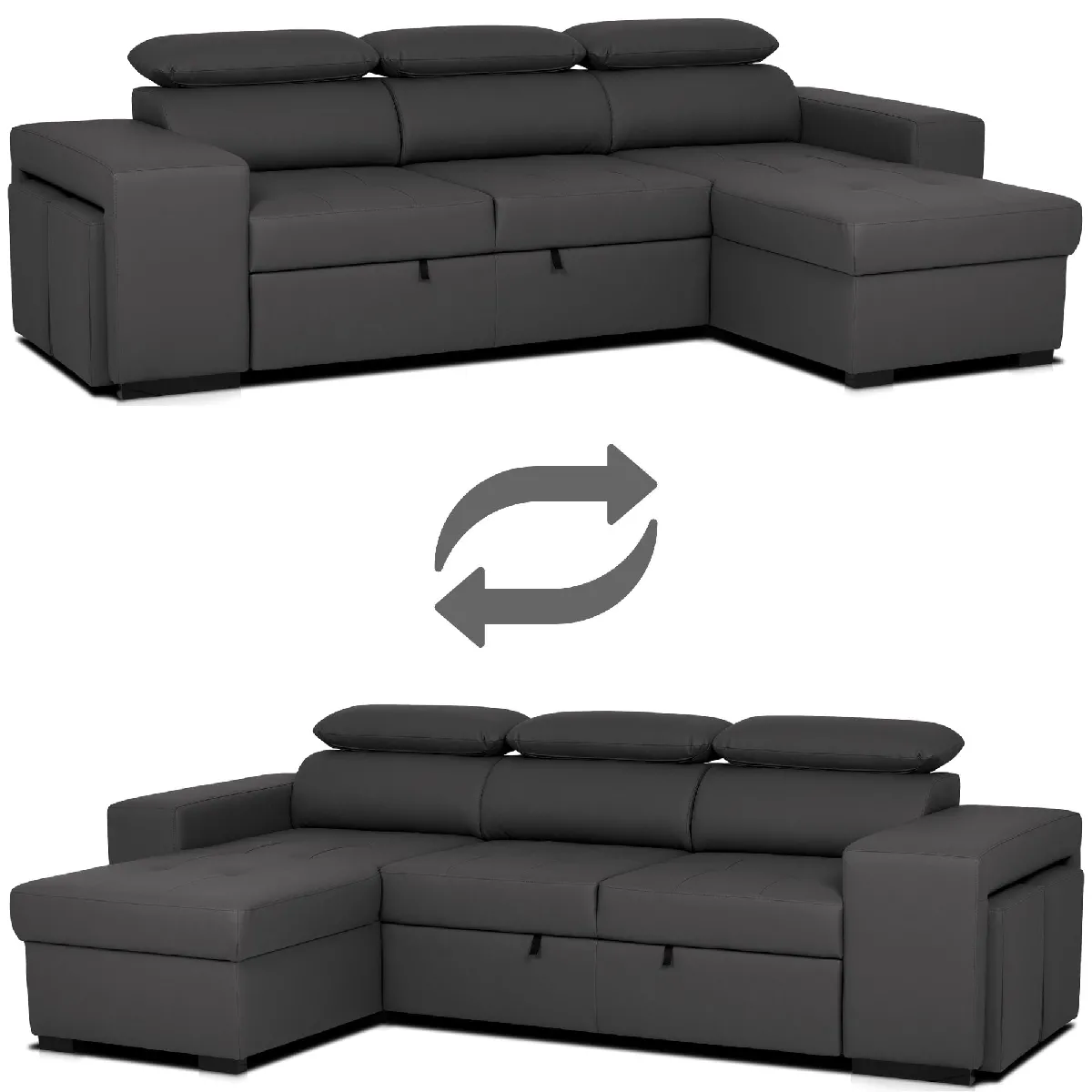 Canapélit 3 places avec têtière réglable et méridienne réversible