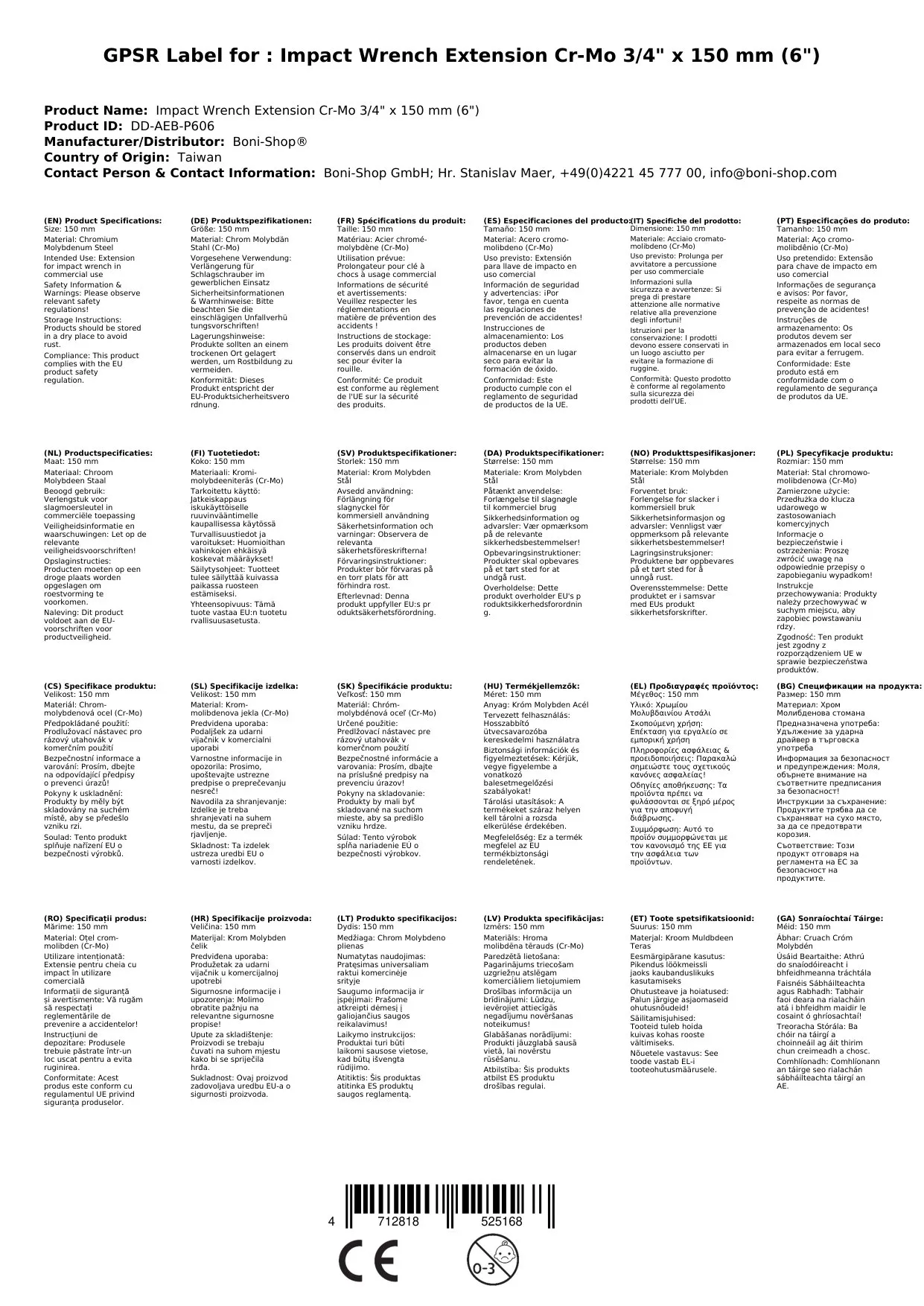 Boni-shop Rallonge clé à choc 3/4" - 150 mm