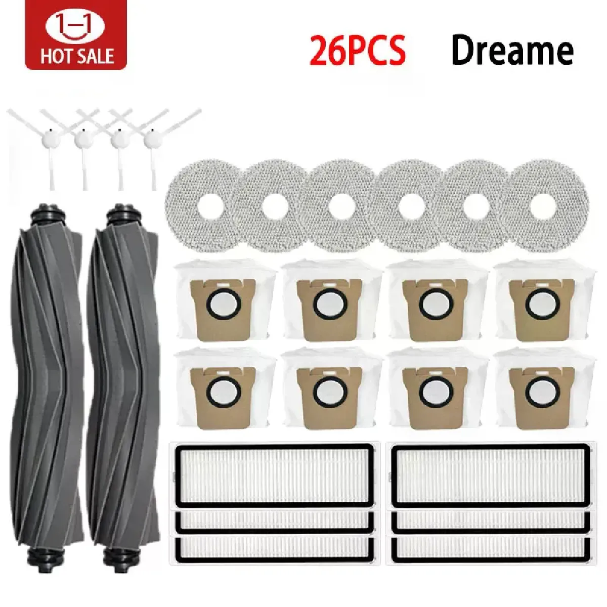 Ce kit réunit les éléments essentiels pour maintenir des performances régulières et une aspiration stable. Compatible avec Xiaomi Mijia B101CN robot aspirateur et laveur tout-en-un ainsi qu'avec Xiaomi Robot Vacuum X10+ (B101GL), il couvre aussi plusieurs modèles Dreame pour une utilisation pratique à long terme. Les composants de remplacement aident à préserver une collecte de poussière efficace et une filtration propre, limitant l'accumulation de débris et soutenant la circulation d'air. Les pièces se remplacent sans outillage spécifique afin de réduire les interruptions de nettoyage.