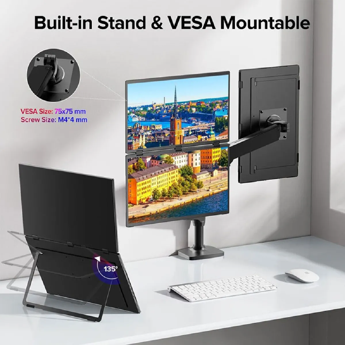 Écran pliable polyvalent : pivotez de 0 à 360° pour partager facilement votre écran dans toutes les directions, idéal pour collaborer avec vos collègues ou partenaires. Le capteur G intégré pivote automatiquement à 180° et prend en charge les modes miroir, étendu, fractionné, horizontal et vertical pour une commutation facile. Il est idéal pour utiliser plusieurs écrans simultanément ou comme écran autonome.