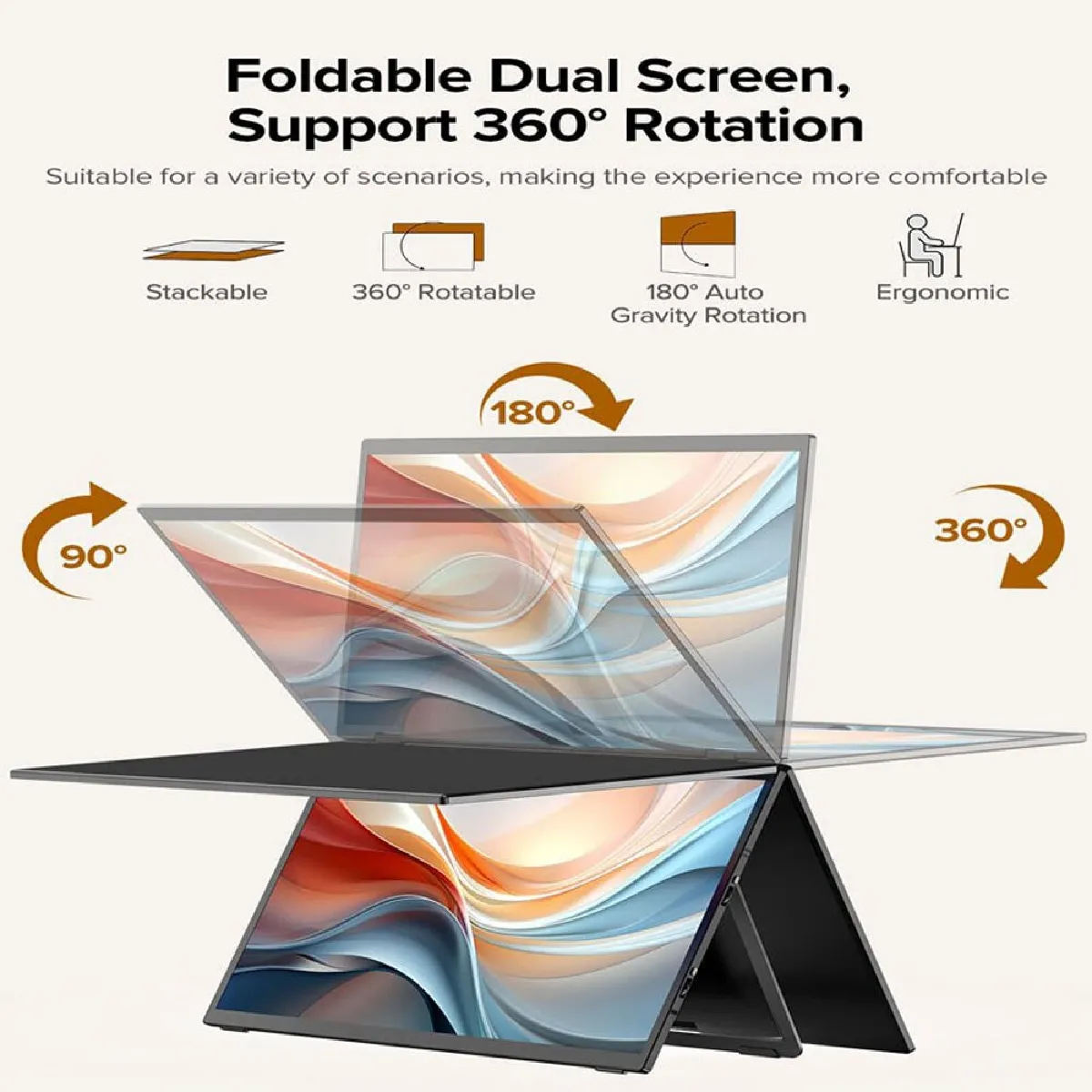 Améliorez votre productivité : Les écrans double écran augmentent votre espace de travail de 30 % et offrent un champ de vision plus large. La conception verticale de l'extenseur d'écran facilite la navigation et la modification de documents et de données sans défilement ni changement de page constants. Avec une gamme de couleurs sRGB de 100 % et des valeurs E < 2, il affiche une reproduction fidèle des couleurs, affichant chaque détail avec précision.