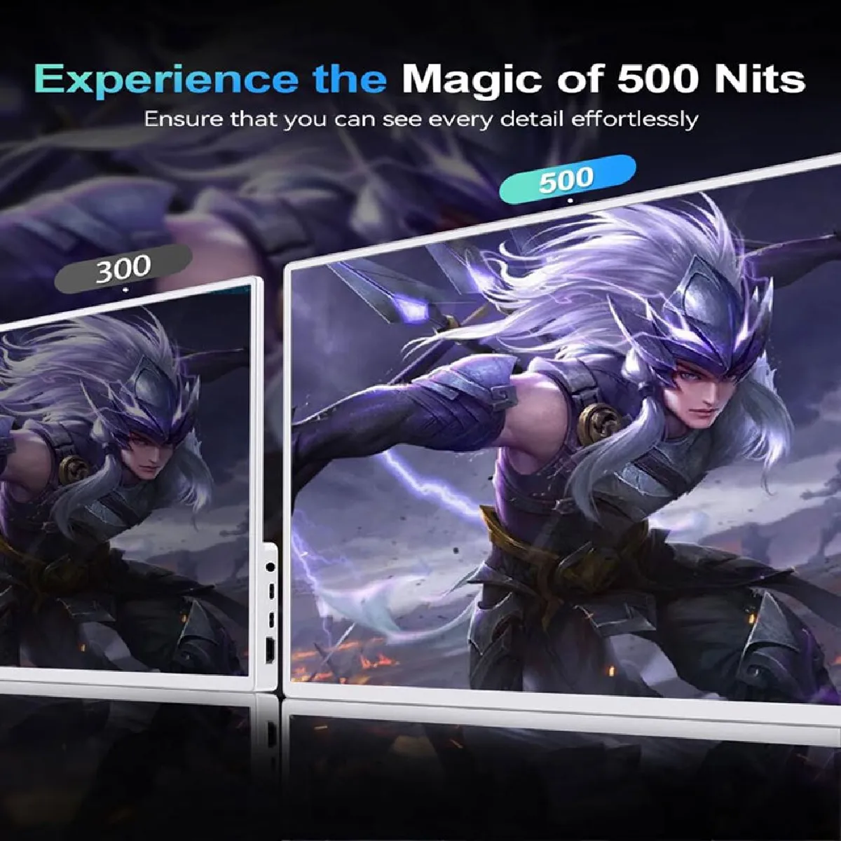 Luminosité et contraste élevés : Profitez de 1,06 million de couleurs (8 bits + FRC). Ce moniteur portable 2K offre une large gamme de couleurs, une luminosité de 500 nits et un contraste de 1200:1, ce qui rend les zones sombres plus sombres et les zones claires plus lumineuses, vous permettant de visualiser chaque détail de votre contenu, fidèle à l'esprit des créateurs.