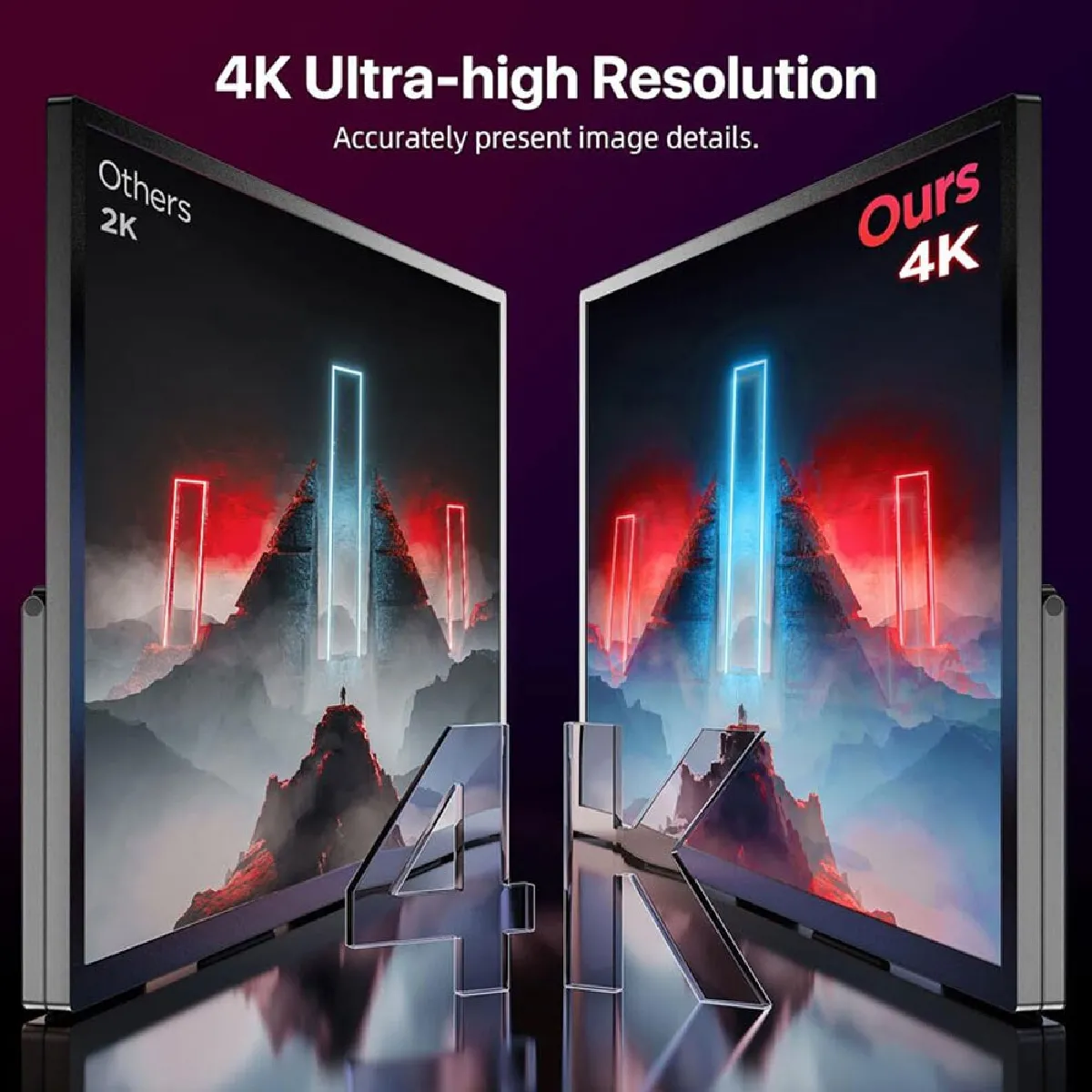 Écran plus grand, meilleure visualisation : Ce moniteur portable 4K de 18,4 pouces offre un espace de visualisation plus grand que les moniteurs de 15,6 pouces ou 17,3 pouces, idéal pour le multitâche et la retouche de fichiers volumineux. Son grand angle de vision de 178 ° garantit une visualisation sans distorsion sous tous les angles. Que ce soit pour travailler, jouer ou voyager, ce moniteur offre une expérience visuelle inégalée.
