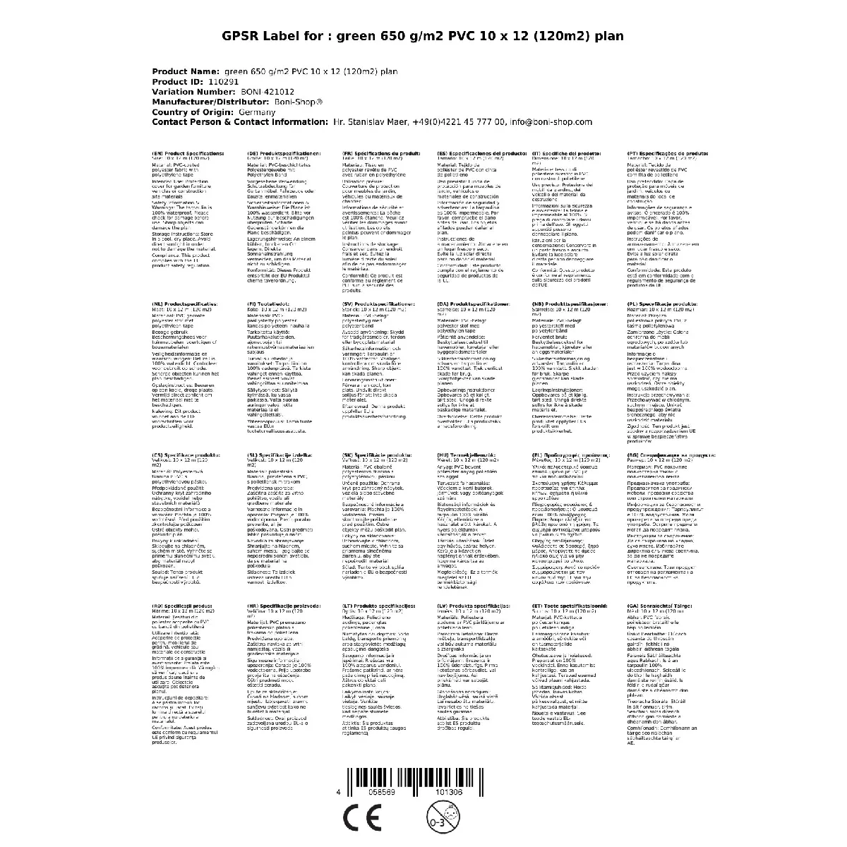 boni-shop Bâche PVC 650g, bâche étanche 10x12, verte, imperméable (120m²) |