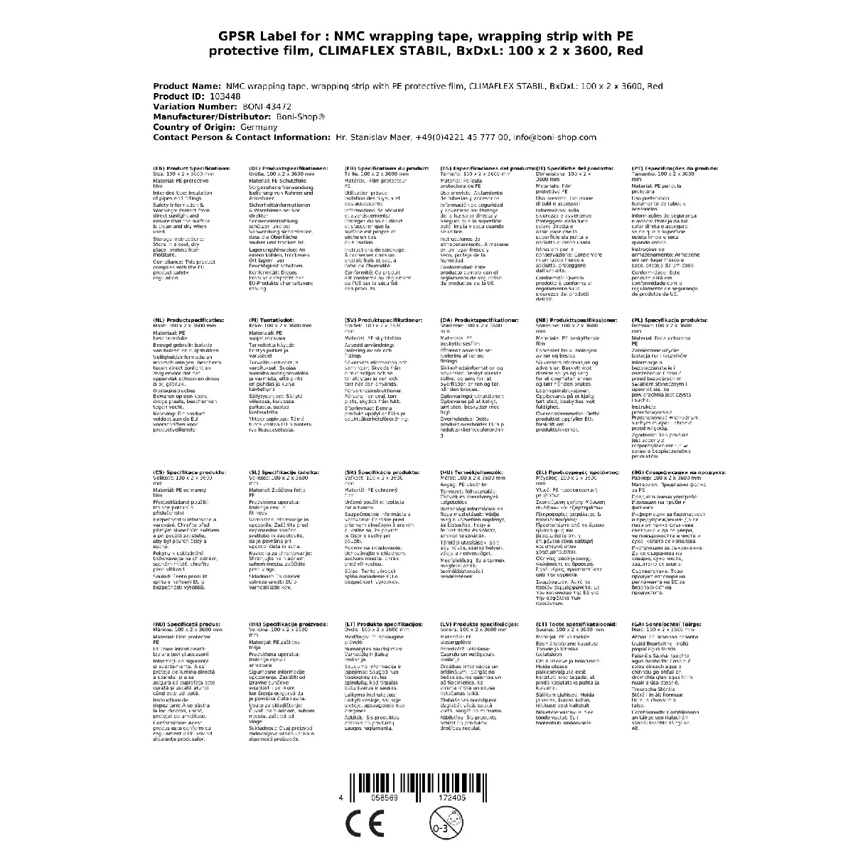 Les caractéristiques principales incluent une largeur de 100 mm, une épaisseur de 2 mm et une longueur de 3600 mm, ce qui vous garantit une couverture suffisante pour de multiples applications. Que ce soit pour le chauffage, la plomberie, la réfrigération ou la climatisation, cette bande répond à vos besoins en matière d'isolation durable et facile à installer.