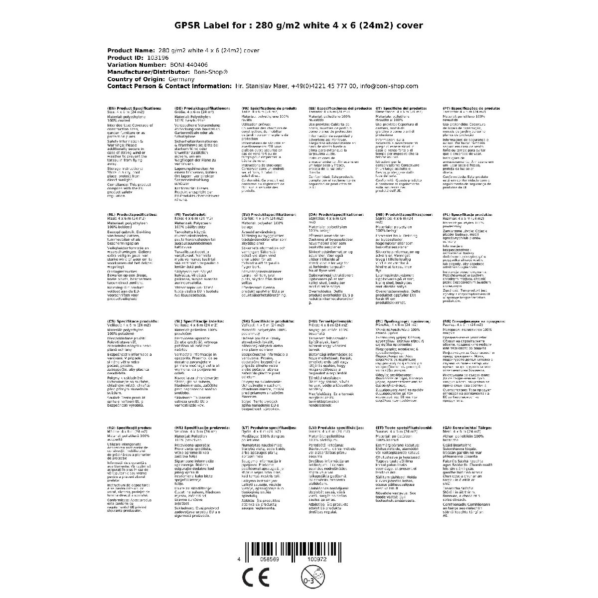 boni-shop Bâche de Protection 4x6m Blanche, Étanche et Anti-UV 280g/m² |