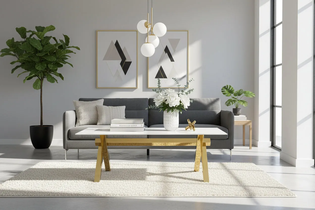 Le salon gagne en clarté grâce à un plateau en verre trempé au motif marbré blanc qui diffuse une ambiance lumineuse et raffinée. La structure croisée en métal finition dorée forme un X graphique, ajoutant une présence décorative sobre et contemporaine. Avec son format 120 x 60 x 45 cm, la table offre une surface pratique pour livres, télécommandes et collations, sans alourdir l'espace. Les matériaux sélectionnés favorisent une stabilité fiable et un entretien simplifié, ce qui convient à un usage quotidien dans un intérieur moderne. Son style s'intègre facilement à un décor actuel, avec un accent marbre blanc et métal gold qui crée un point focal discret.