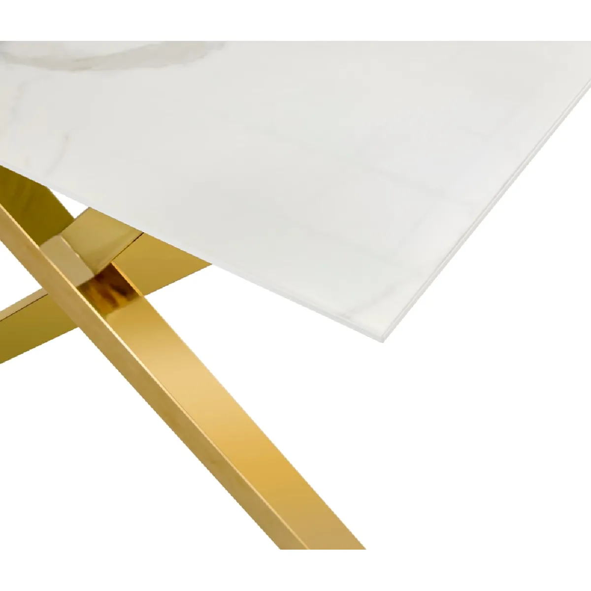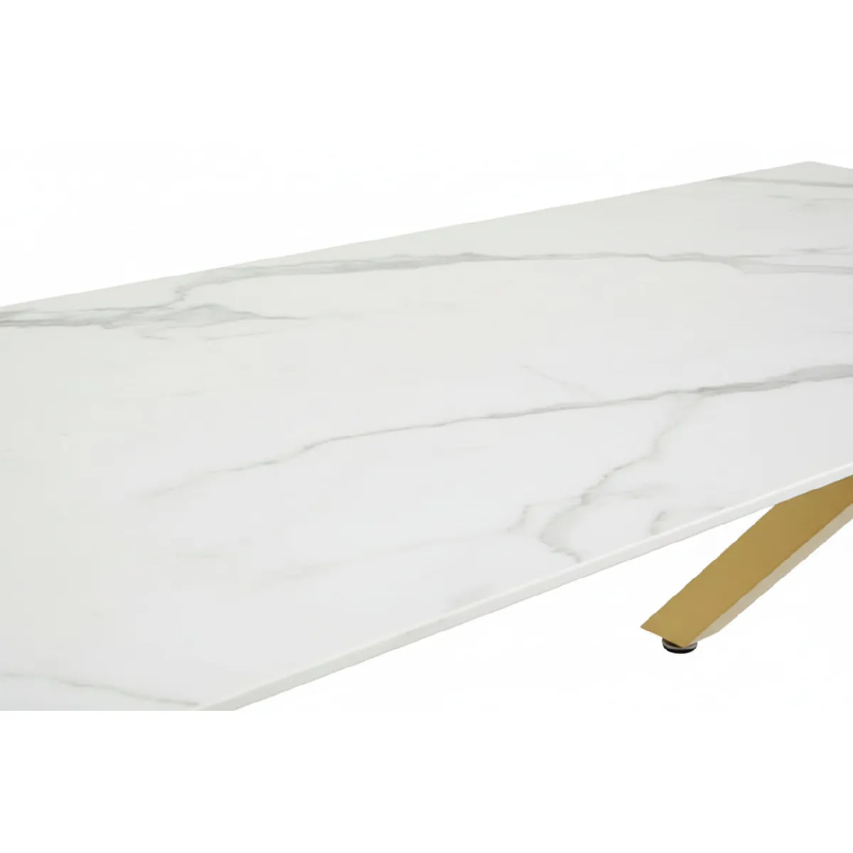 Table basse IXE Gold, verre trempé marbré blanc 120 x 60 x 45 cm