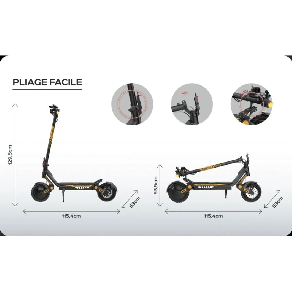Confort et stabilité : pneus 10" tubeless off-road, double suspension, plateau large, tout est pensé pour une conduite fluide et sécurisée.