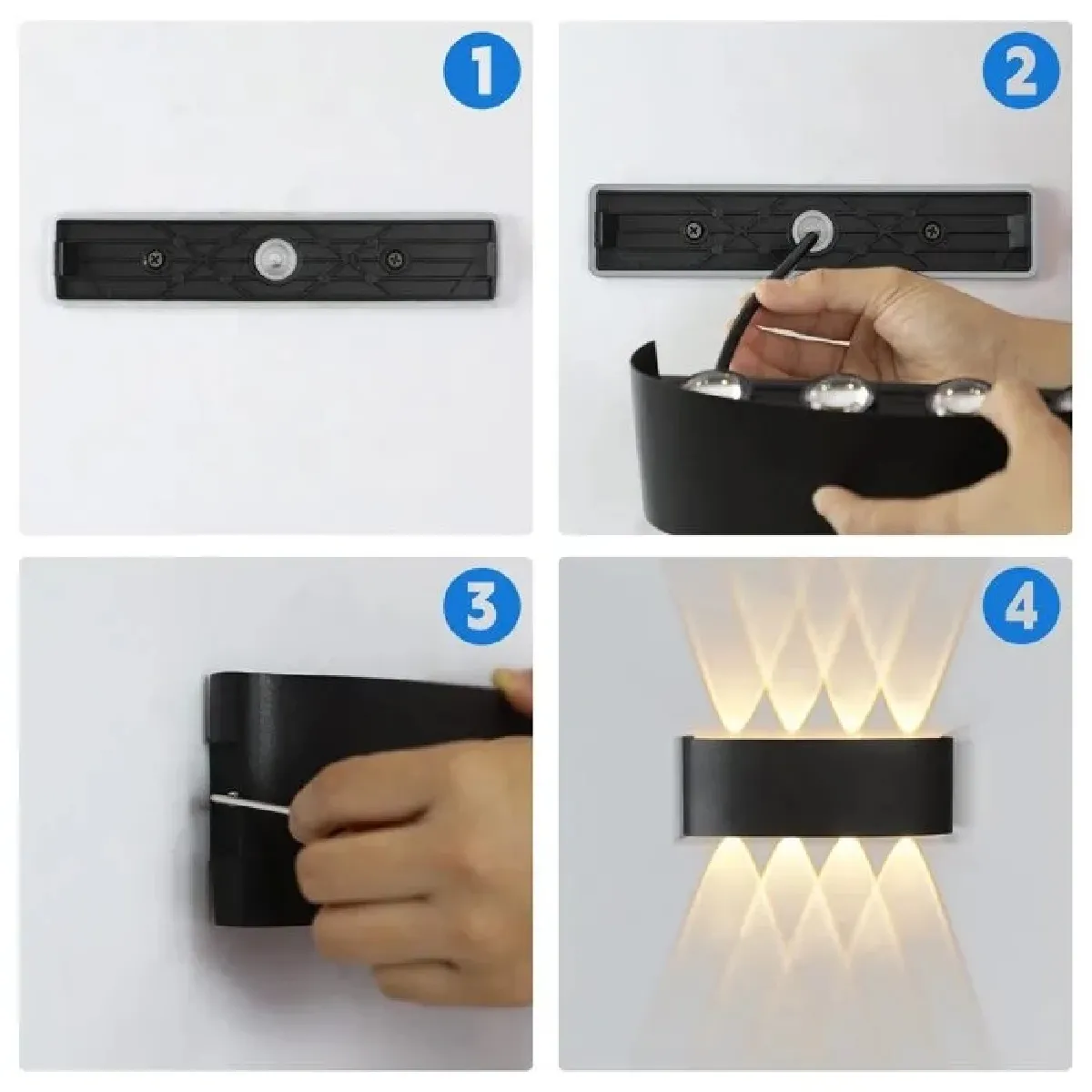 éclairage mural : cette applique présente un design unique et offre des éléments d'éclairage vers le haut et vers le bas ainsi qu'une fonction d'angle de faisceau réglable. Dans le même temps, vous pouvez ajuster l'angle de propagation du faisceau