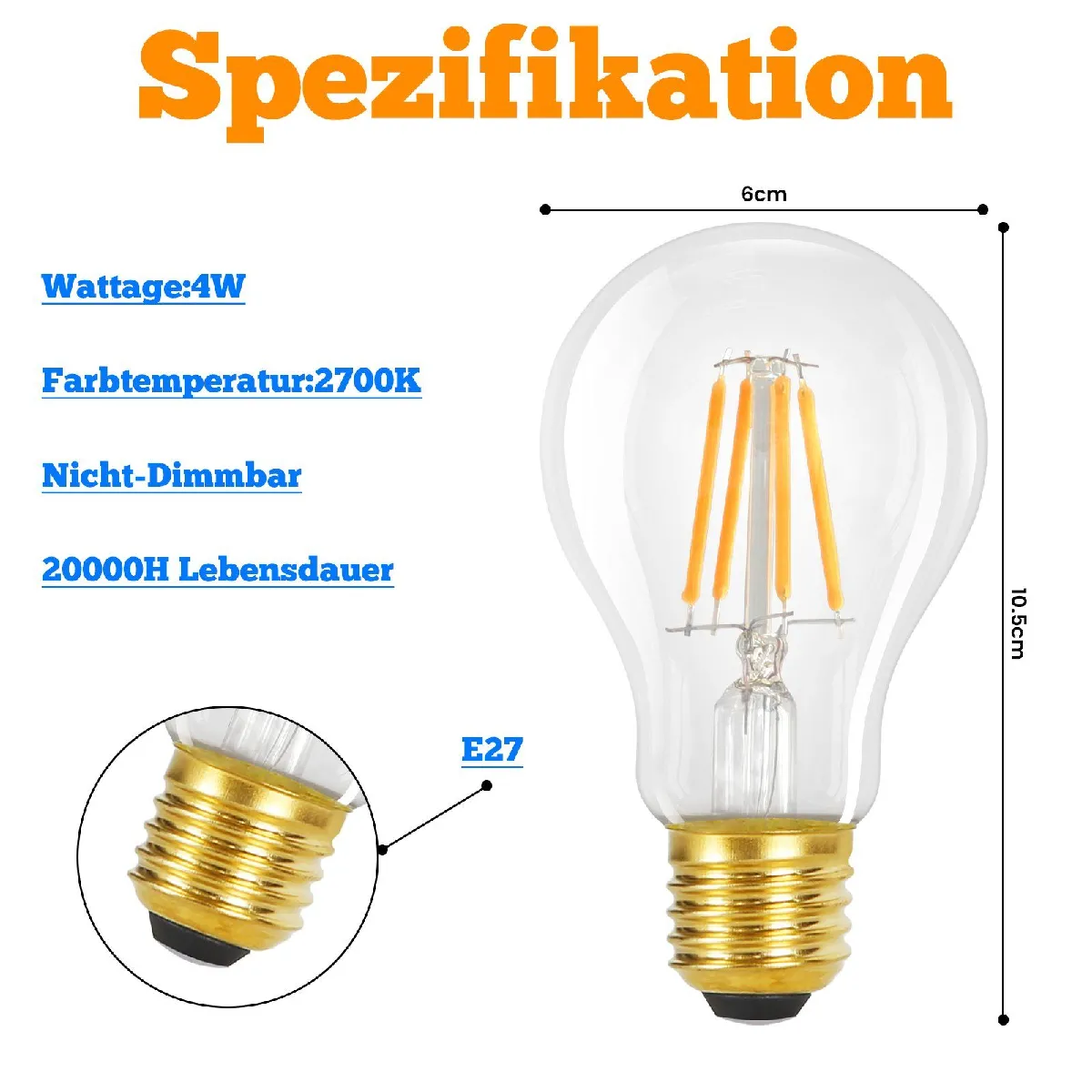 Ampoule LED E27 vintage Edison - 4 W - 2700 K blanc chaud - IP20 - allumage instantané - faisceau 360° - classe énergie F - non dimmable - intérieur
