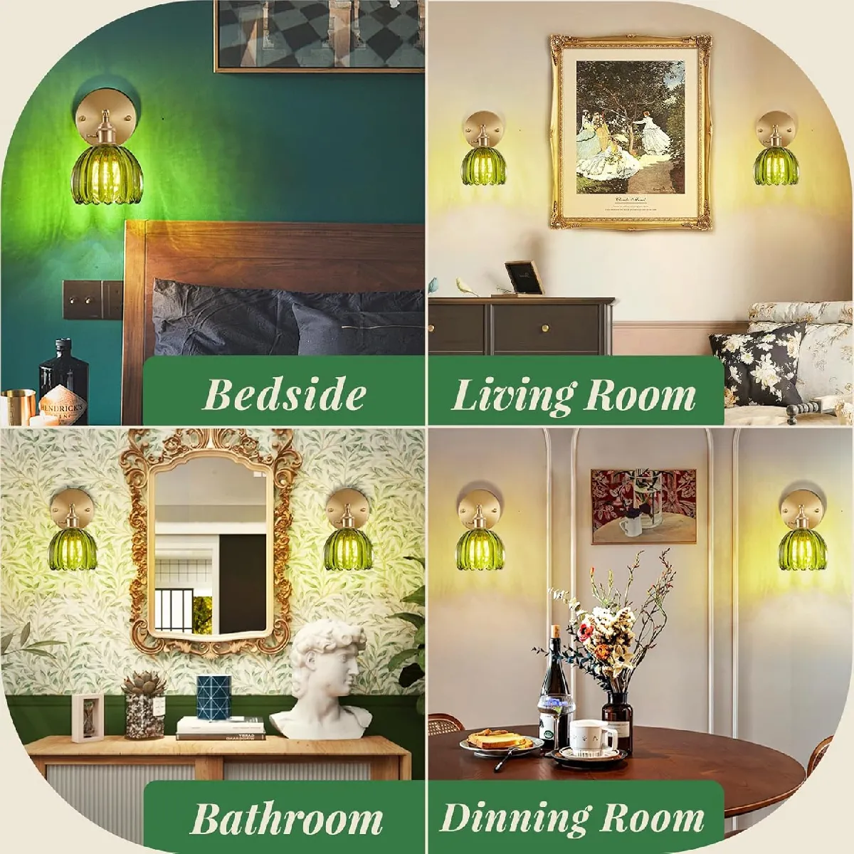 Applique Murale Rétro Lampe Murale Vintage D'Intérieur Applique Murale Moderne Abat Jour En Verre Angle Réglable Vert