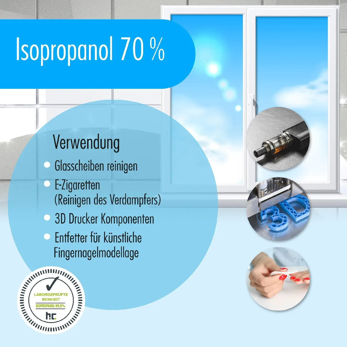 Hoefer Chemie Alcool Isopropylique 70% Höfer Chemie® - Bouteille de 1 L pour Nettoyage Polyvalent |